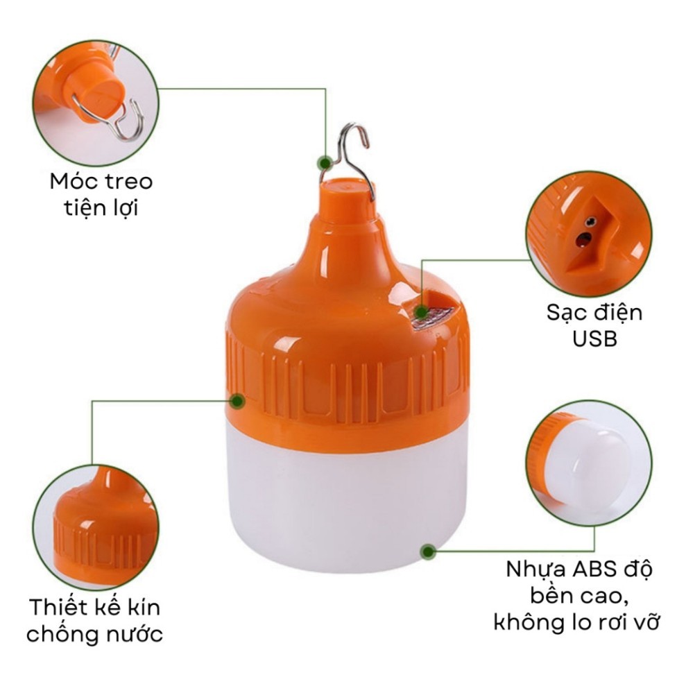 Bóng Đèn Tích Điện Công Xuất 100W 150W 200W Siêu Sáng , Bóng Đèn Led Tích Đi ện Chống Nước Sạc USB