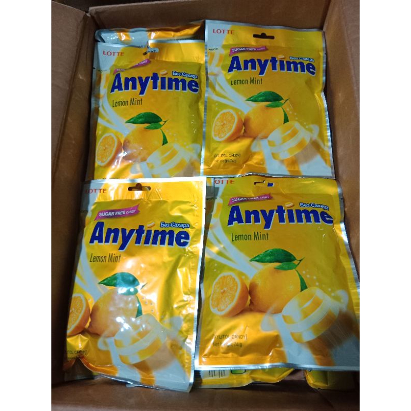 [20 bịch]Kẹo Anytime Lotte Không Đường Bạc Hà/Đào/Chanh Hàn Quốc 60g x 20