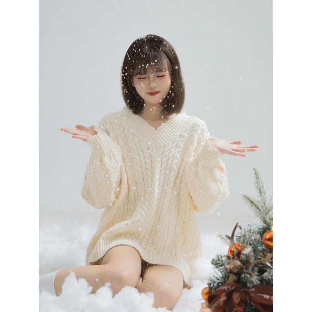 Áo Len Mềm Mịn Phối Thân Thừng Xoắn Nhiều Màu Pastel Tay dài Dáng Rộng Cổ Tim Phong Cách Hàn Quốc Vui Vẻ