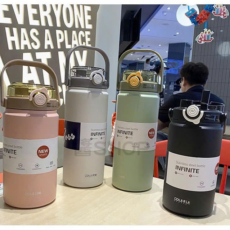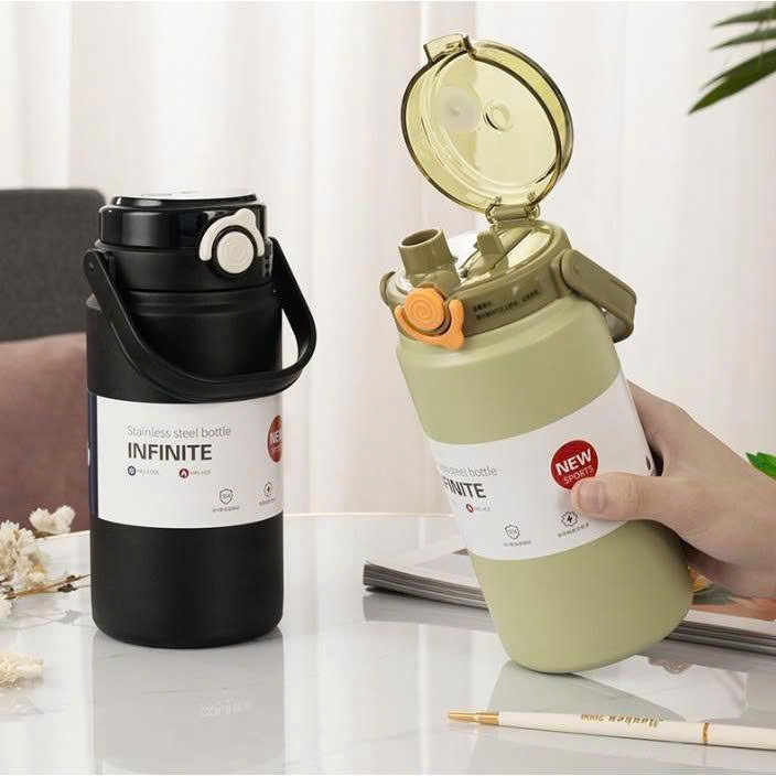Bình Giữ Nhiệt Có Quai, Ống Hút, Bình Nước Giữ Nhiệt Nóng Lạnh 24H 1000ml/1200ml Không Đổ Mồ Hôi