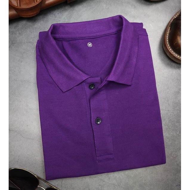 Áo Thun Có Cổ Polo Cá Sấu 4 Chiều Cổ Bẻ Màu Tím Đậm Huế Form Xuông Dùng Cho Nam Và Nữ