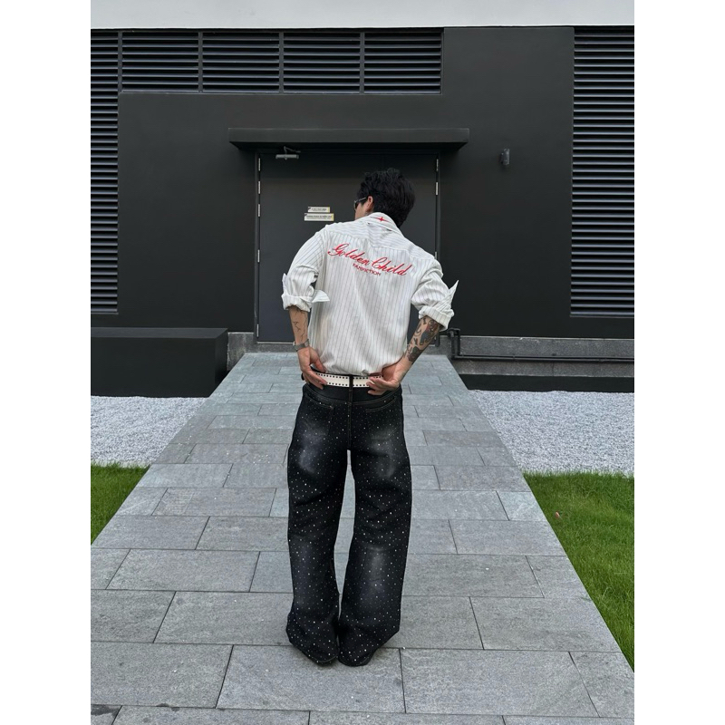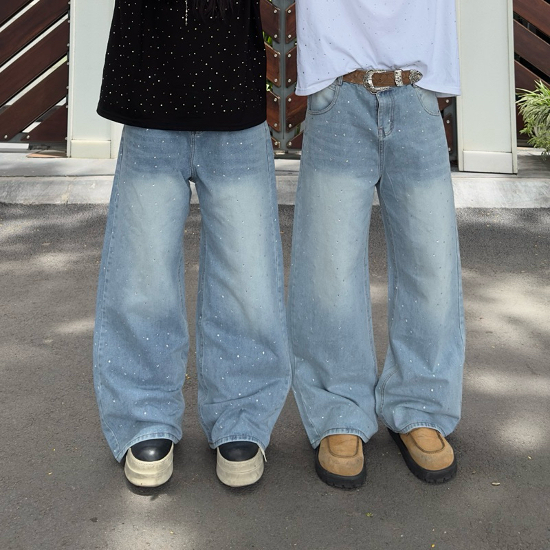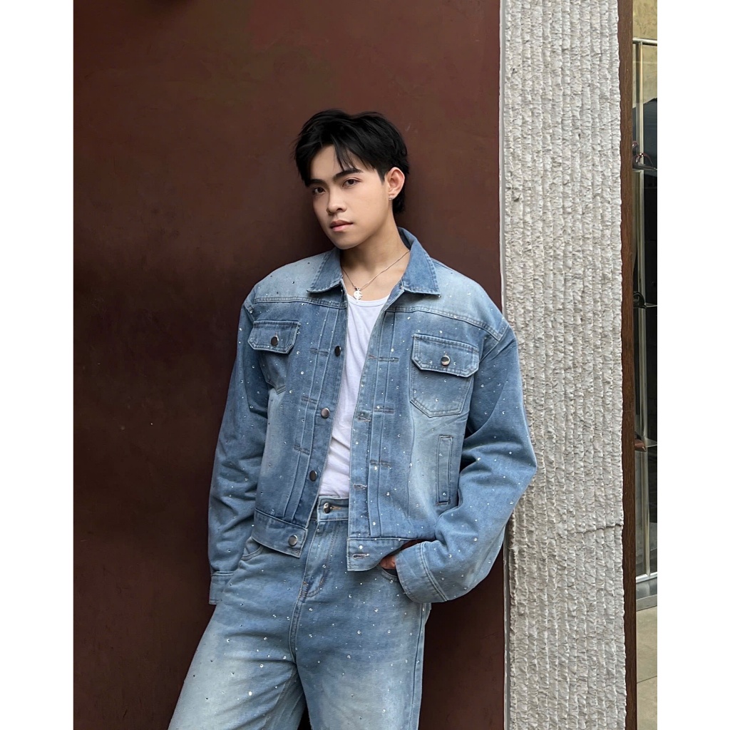 Quần Jean Dài Wash ĐÍNH ĐÁ , Áo khoác jean BLING BLING FAFIC Studio ỐNG RỘNG unisex Quần Jeans suông jean Nam Nữ