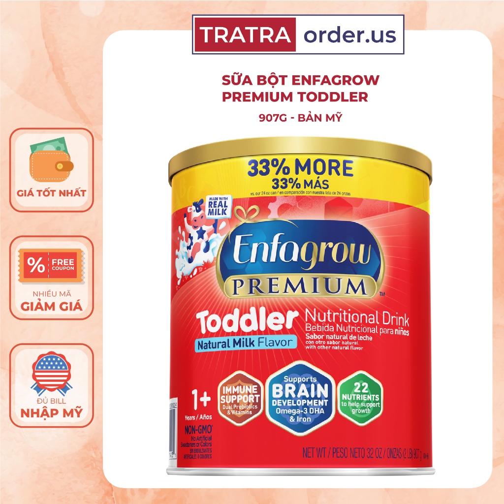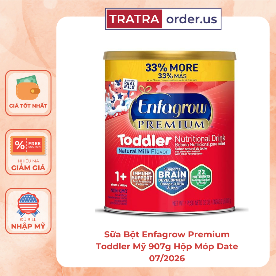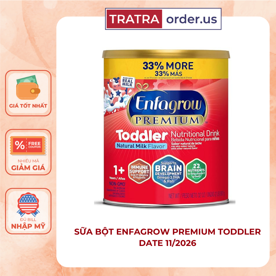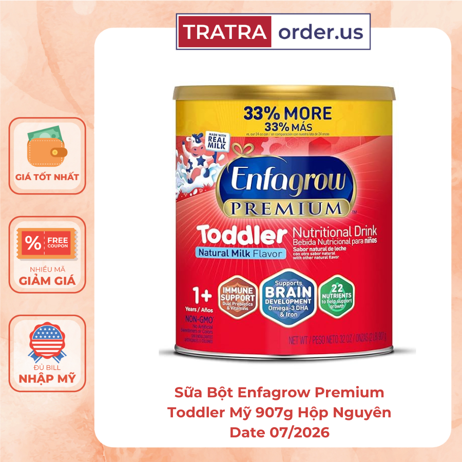 Sữa bột Enfagrow Premium toddler - Enfagrow đỏ nắp vàng 907/1040G- Bản Mỹ date 2026