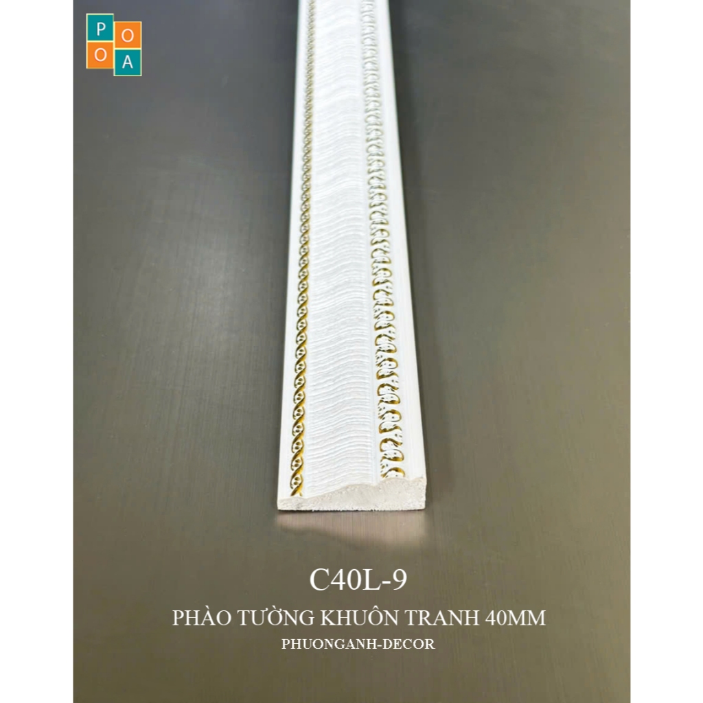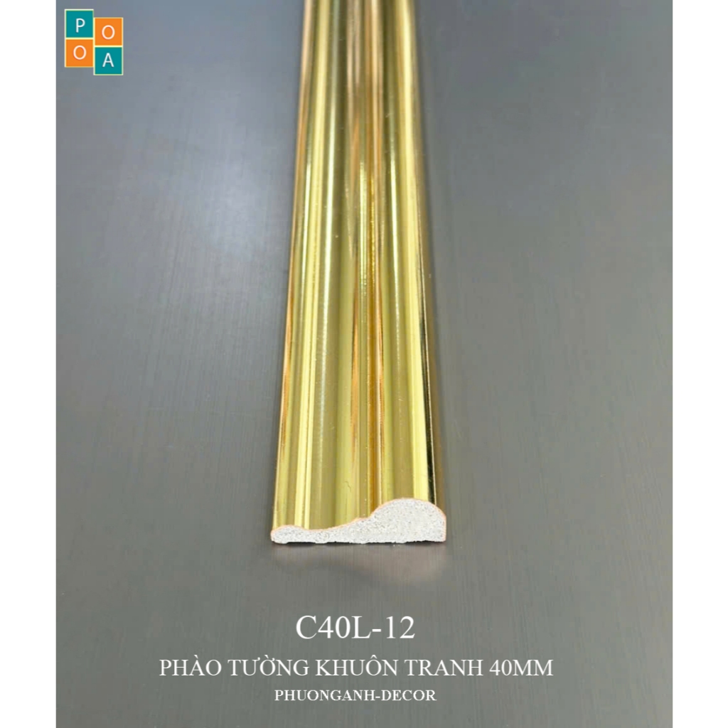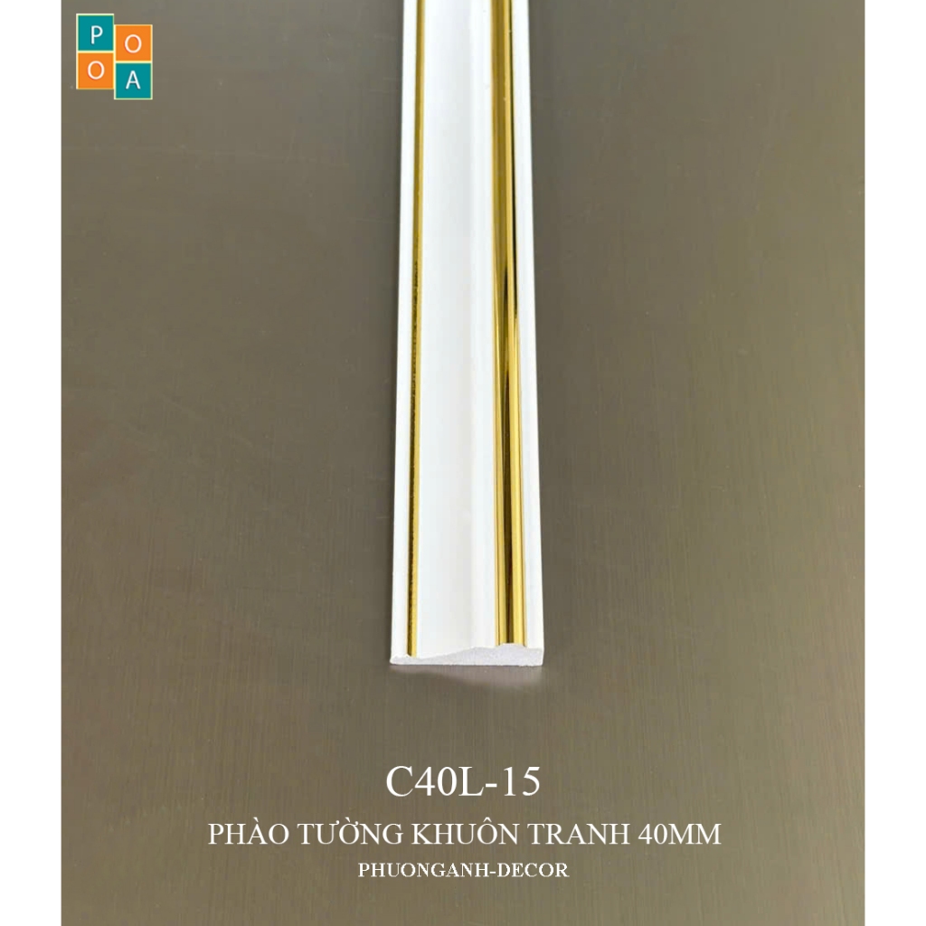 Phào chỉ tường PS Hàn Quốc, phào lệch 40mm vàng cạnh, cây dài 2400mm
