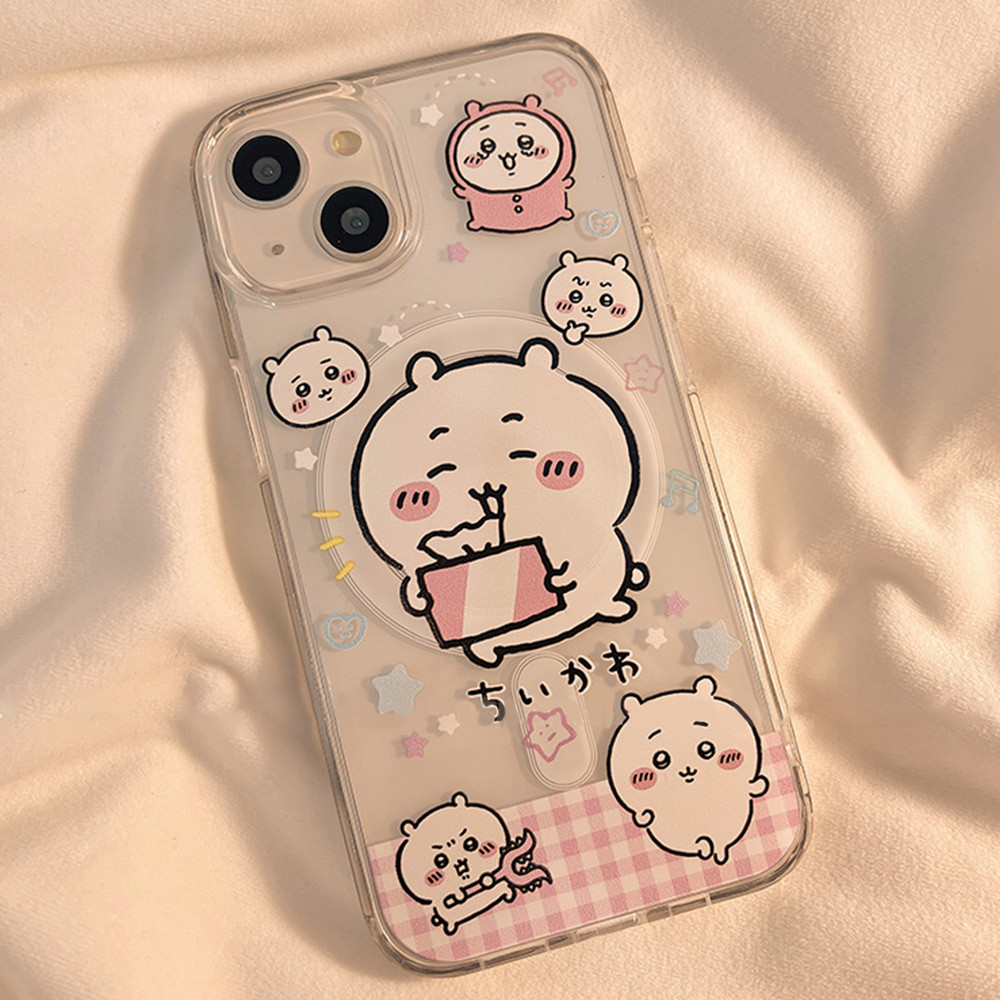 Ốp điện thoại trong suốt sạc không dây từ tính hoạt hình dễ thương Chiikawa cho iPhone 16 15 11 14 13 12 Pro Max 16 Plus Ốp lưng cứng chống sốc siêu mỏng