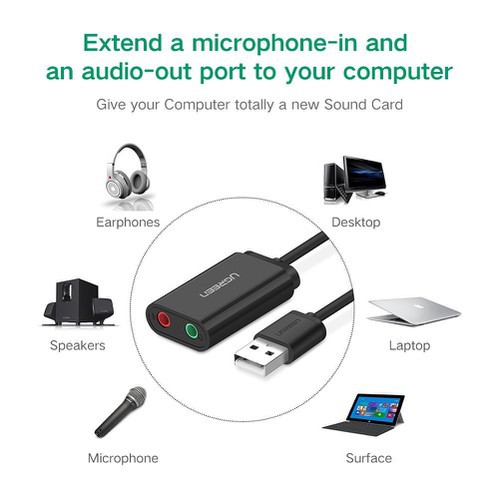 Cáp Chuyển USB Ra Sound UGREEN 30724 (USB sang Headphone và Microphone) - Hàng Chính Hãng