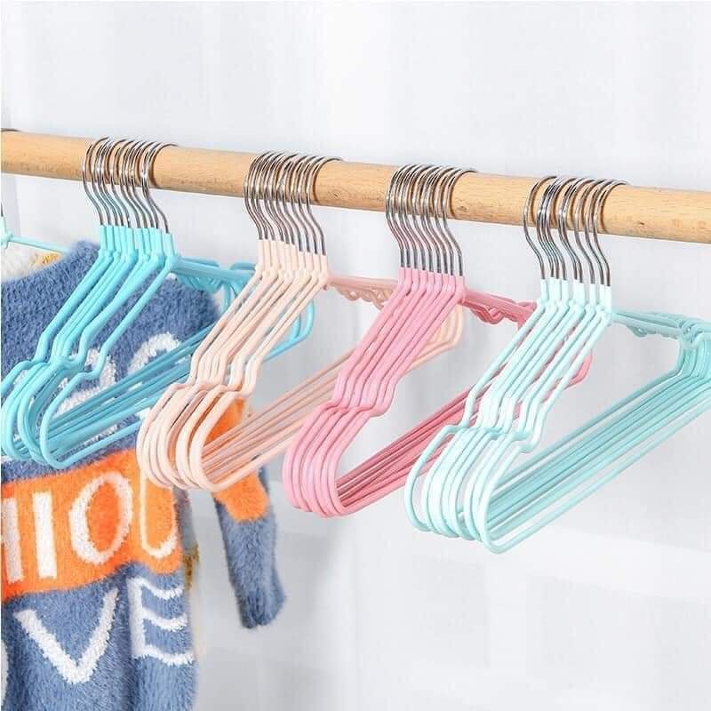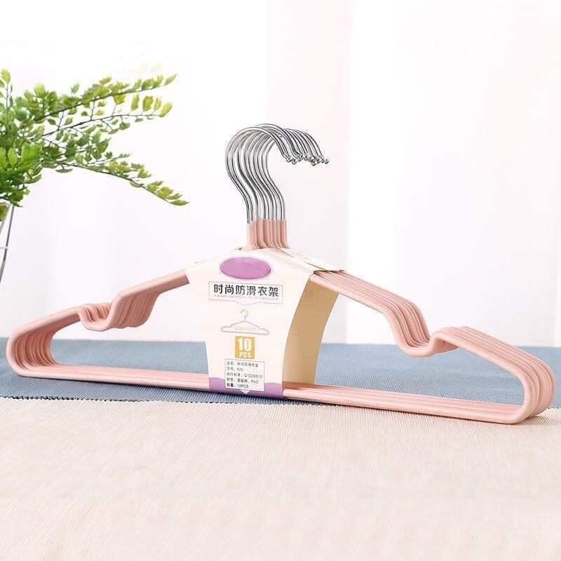 [Nhập khẩu Nhật Bản] Móc treo quần áo inox bọc nhựa chống trơn, kích thước người lớn - Set 10 chiếc