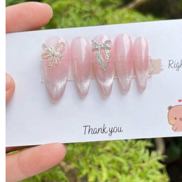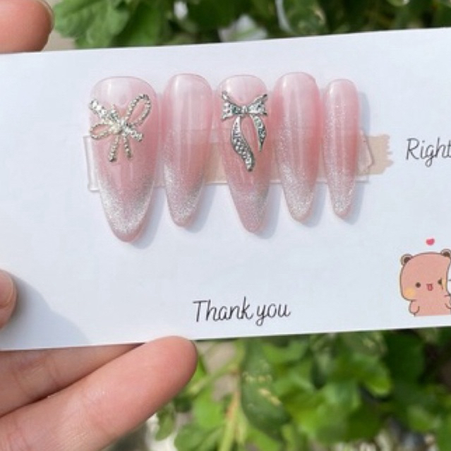 nail thiết kế fen mắt mèo đầu móng kèm charm nơ