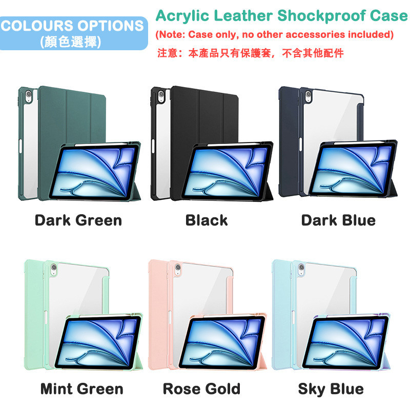 Dành cho iPad Air 11 2024 11inch Tri-Fold Smart Stand Case Acrylic + Soft TPU Back Cover