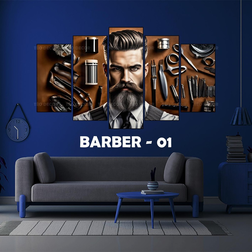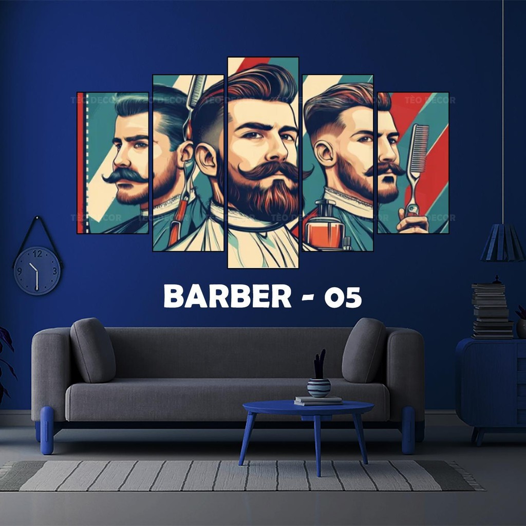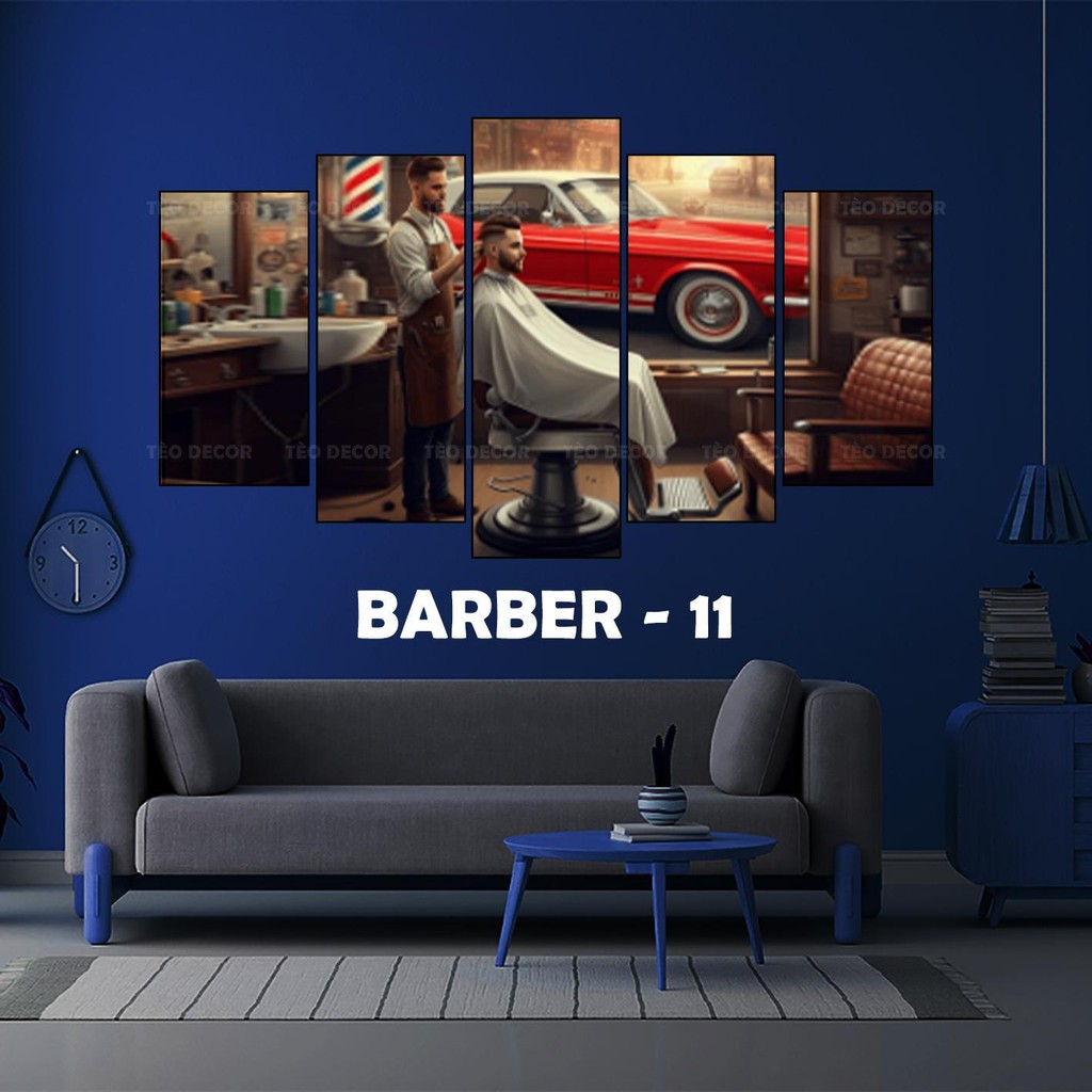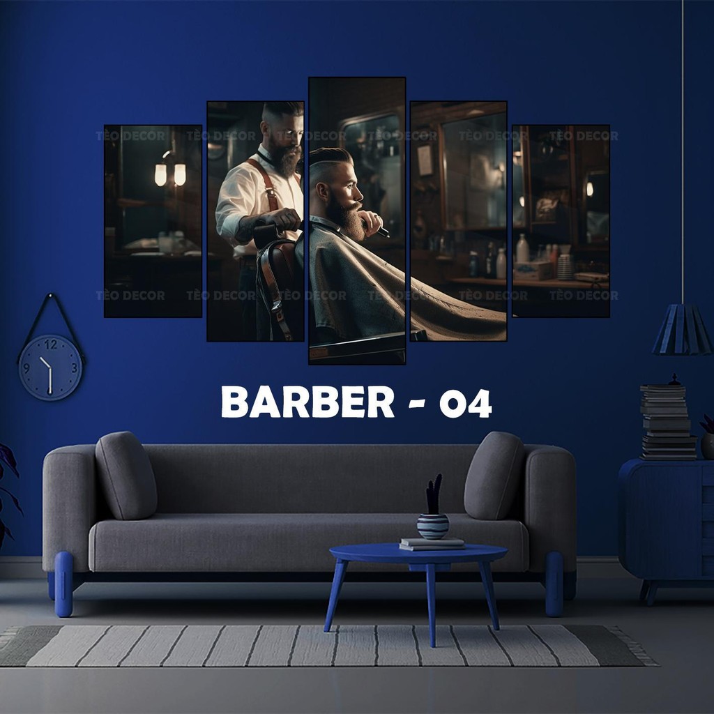 Tranh Decor Tiệm Tóc - BARBER Shop, Bộ 5 Tấm Dán Tường cán Formex 5mm, Decor tiệm tóc, barber