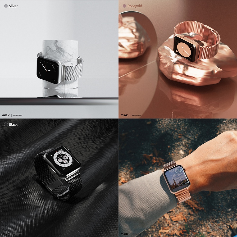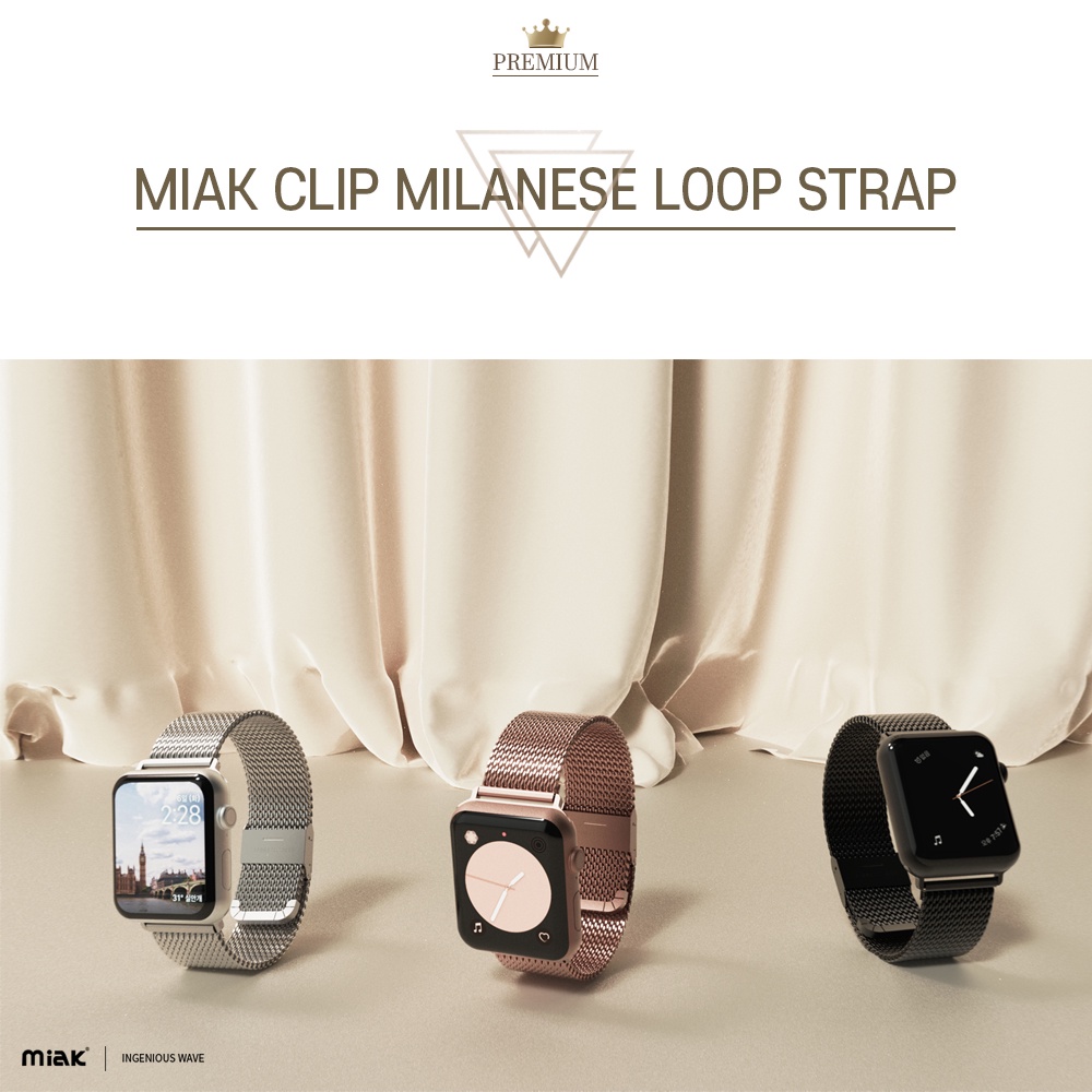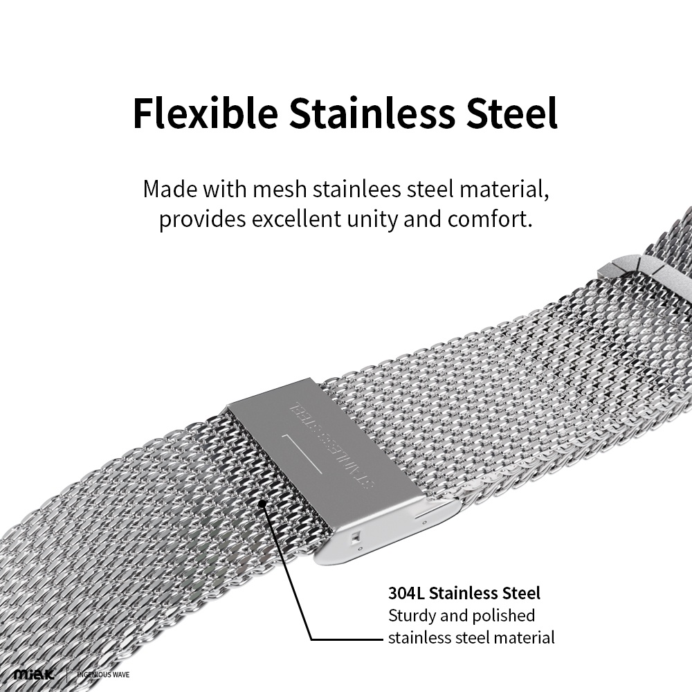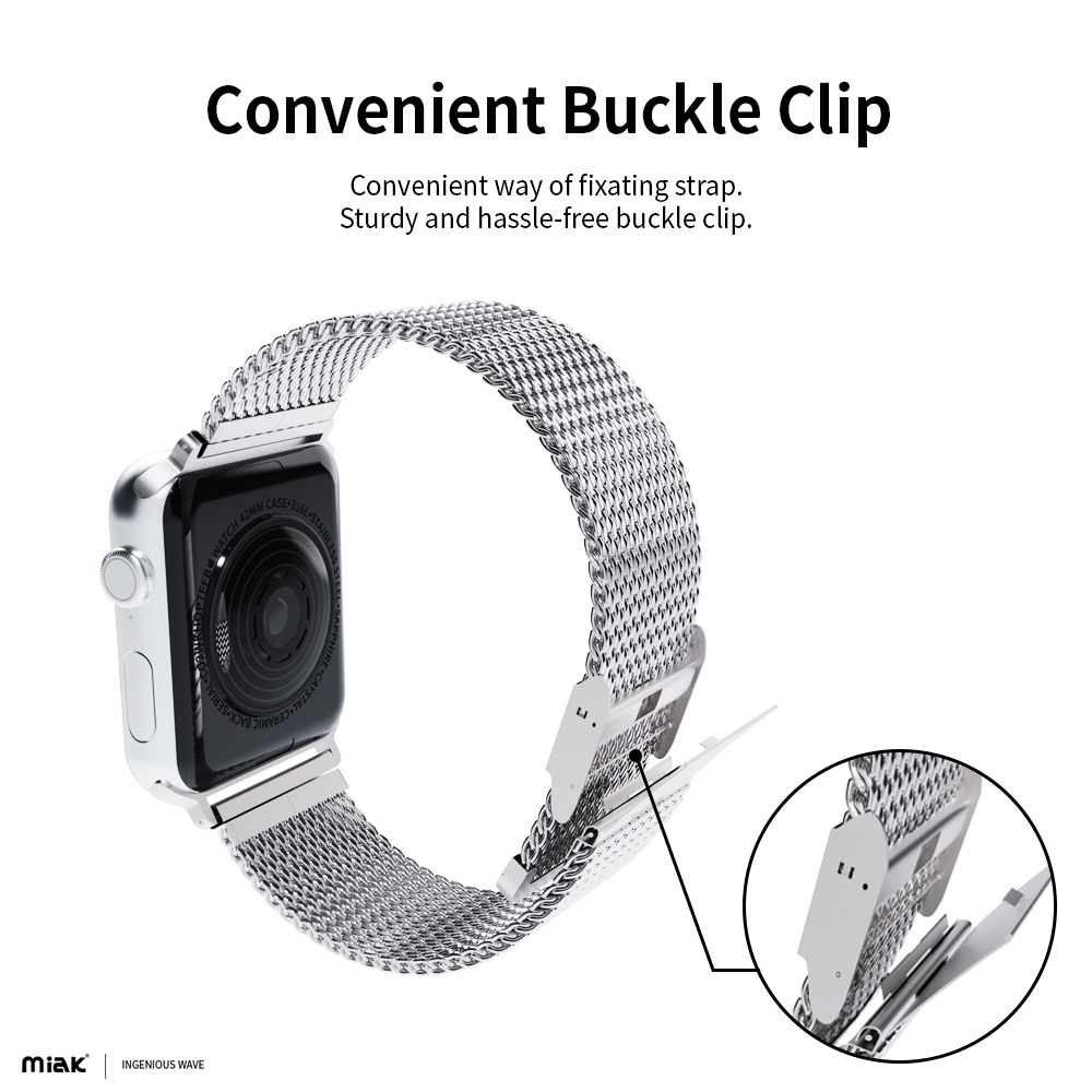 Miak Milanese Loop Clip Strap Compatible For Watch Strap Series 10 Series 11 38/40, 42/44/45mm Premium Stainless Mesh Band