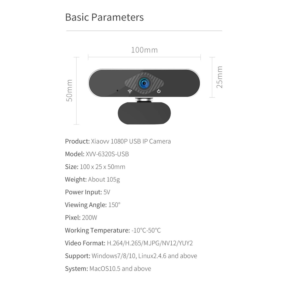 Webcam Xiaomi Xiaovv 1080P HD USB 2 triệu điểm ảnh 150 siêu rộng góc tự động âm thanh đa năng