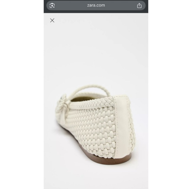 [ZARA AUTH] Giày bệt búp bê Braided Ballet Flats dây đan bính da PU trắng kem quai ngang size35