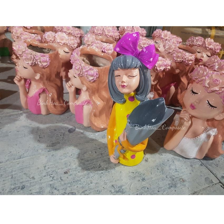 Bình hoa cô gái 5 composite mã bh285, bình hoa búp bê, lọ cắm hoa cao cấp, bình trang trí