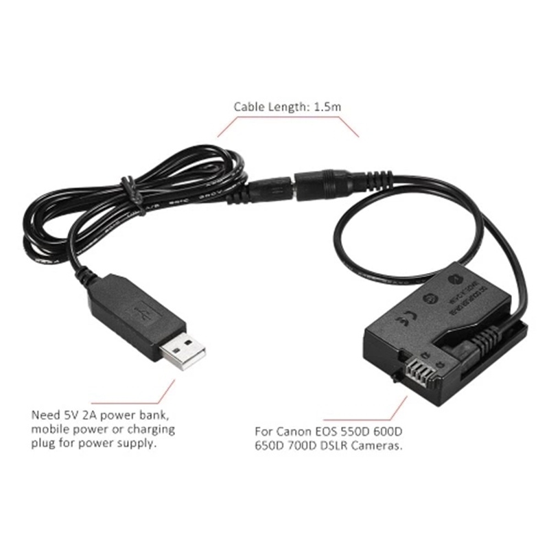 Pin Sạc Dự Phòng DR-E8 Với Cáp Chuyển Đổi LP-E8 Cho Máy Ảnh Canon EOS 550D 600D 650D 700D DSLR
