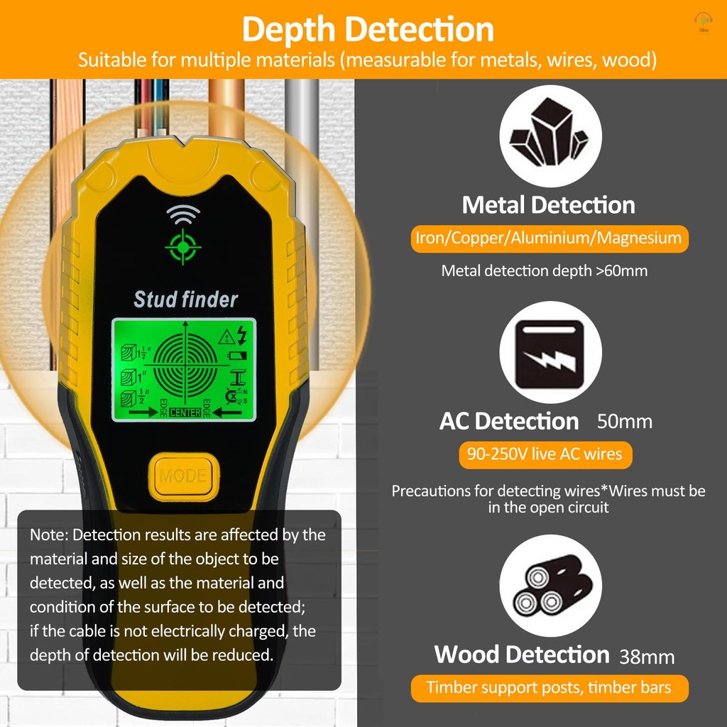 Stud Finder Máy quét tường Công cụ tìm kiếm đinh tán đa chức năng 5 trong 1 Màn hình LCD & Báo động âm thanh cho trung tâm & cạnh kim loại Gỗ và dây AC Phát hiện chạy bộ