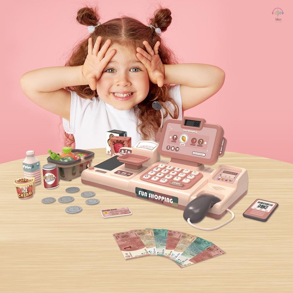 Bộ đồ chơi máy tính tiền cho trẻ em từ 3 tuổi trở lên có máy quét Máy tính Micro Play Moneny Thẻ tín dụng 7 chiếc Quét Giỏ tạp hóa Hành động thực tế & Âm thanh Đồ chơi giáo dục cho