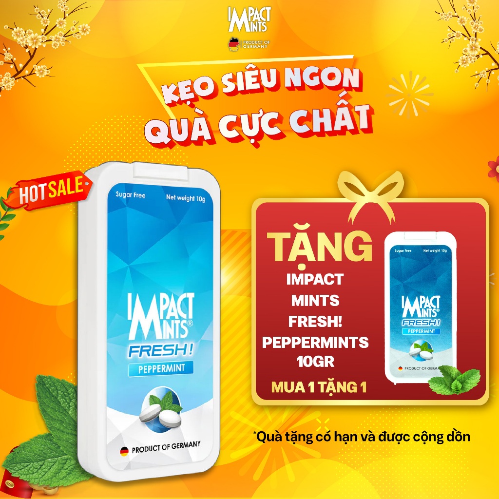 Kẹo Ngậm Bạc Hà Không Đường IMPACTMINTS FRESH! Hương Vị Bạc Hà - Đào - Táo Vàng - Chanh Dây Xoài