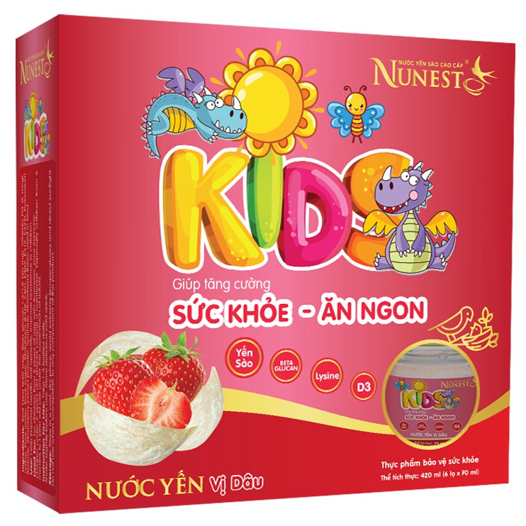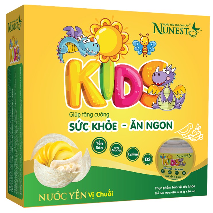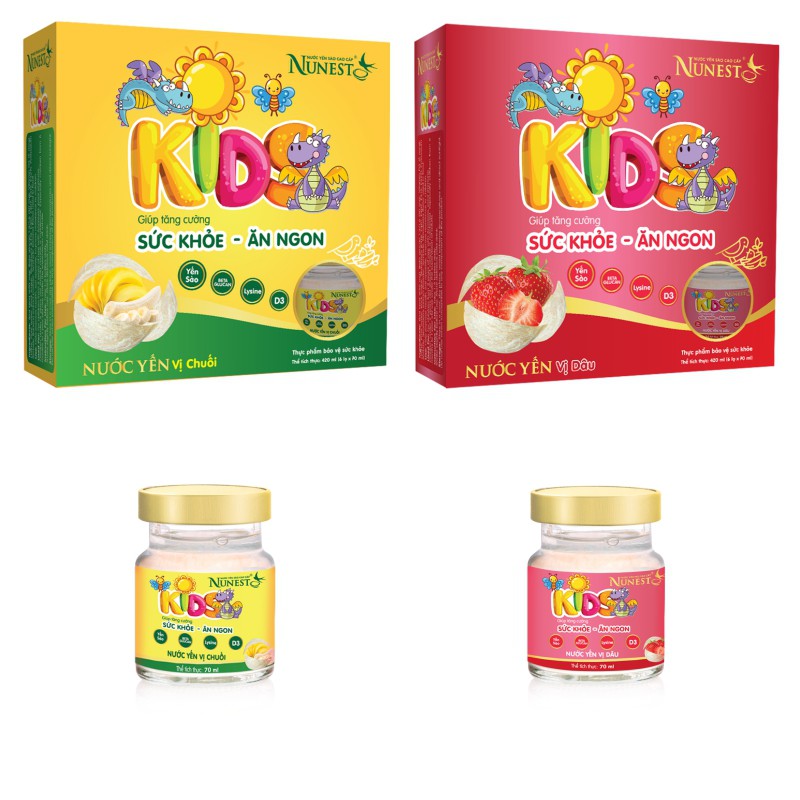 Lốc nước yến cho bé Nunest Kid vị Dâu/Chuối (6 lọ x 70ml)