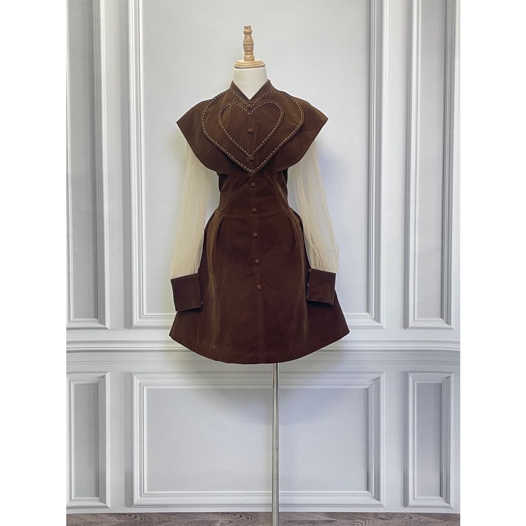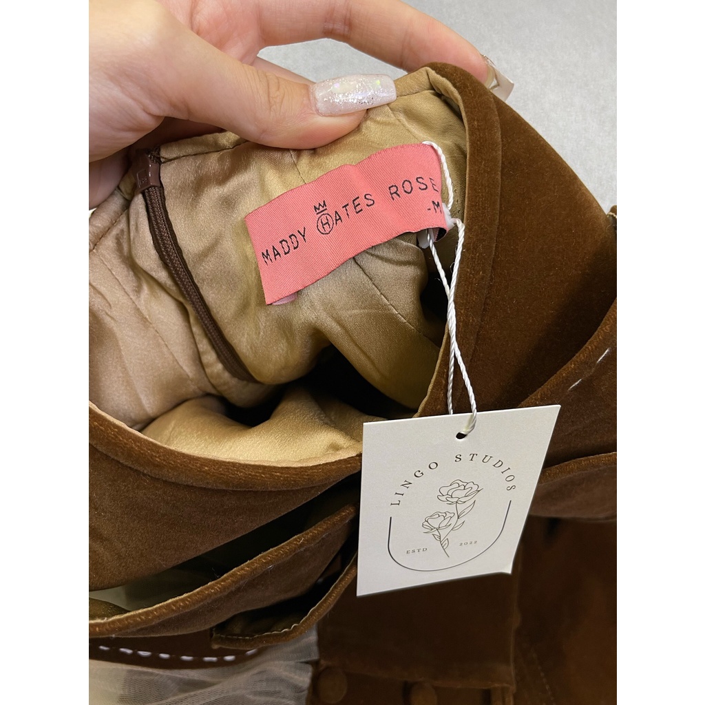 Váy nhung tím MADDY HATES ROSE hàng hiệu chính hãng thời trang nữ V784 màu nâu be size M secondhand thanh lý ký gửi