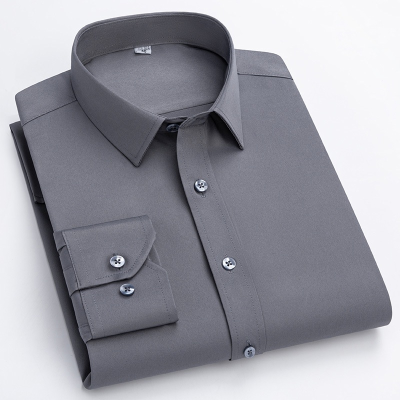 Thông Minh Thường Không Sắt Dài Tay Phong Cách Hàn Quốc Trơn Công Sở Công Sở Trang Phục Nam Áo Sơ Mi