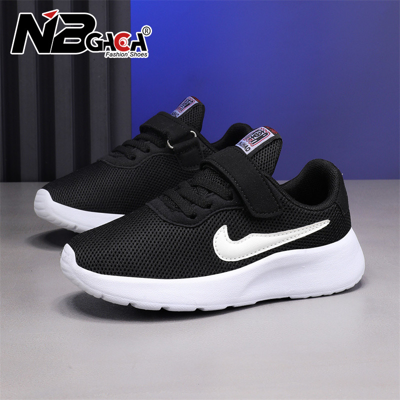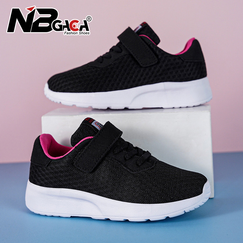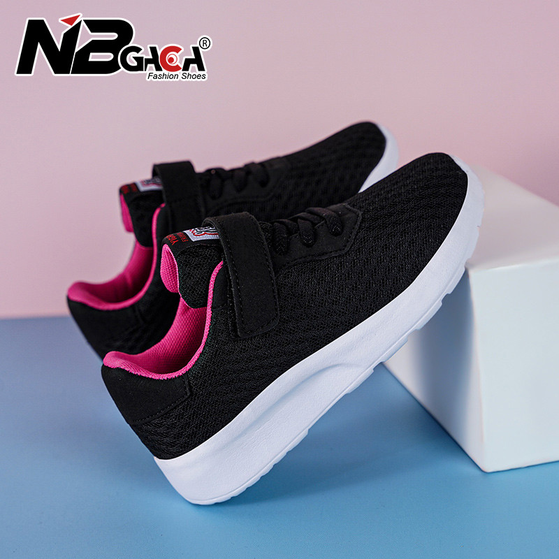 Giày chạy bộ nhẹ cho trẻ em Giày thể thao lưới bé trai và bé gái Giày đi bộ thoáng khí Đế mềm Giải trí màu đen