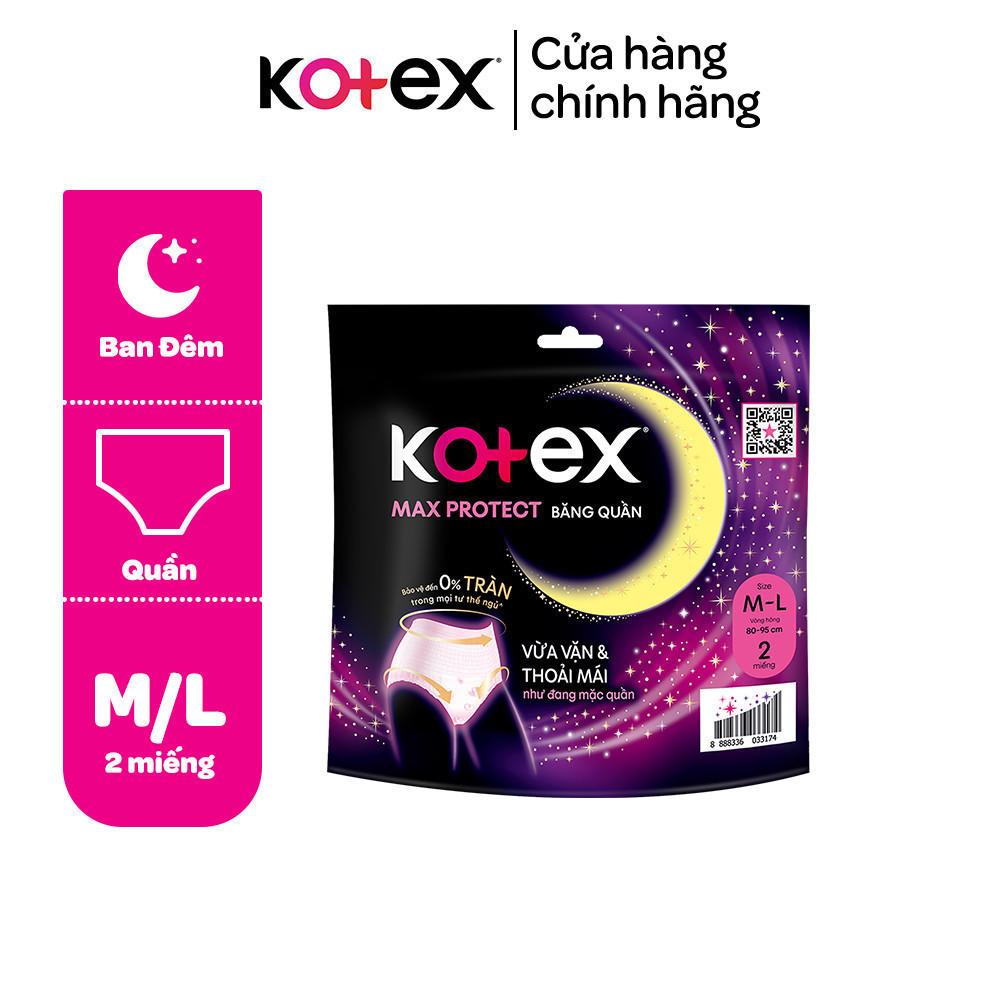 Băng vệ sinh Kotex đêm dạng quần cỡ M/L & L/XL 2 quần/gói và M/L 5 miếng