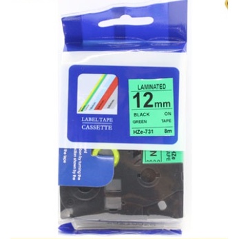 Nhãn In Brother Tz2-731, Khổ 12mm x 8 Mét, Chữ Đen Nền Xanh lá ( Black on green),Tương Thích Dùng cho máy Brother