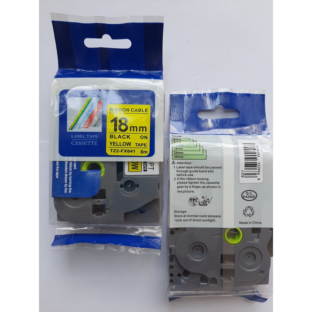 Nhãn In Brother Tz2-641, Khổ 18mm x 8 Mét, Chữ Đen Nền Vàng ( Black on yellow), Nhãn Đa Lớp, Bám Dính Cao, Chống Nước