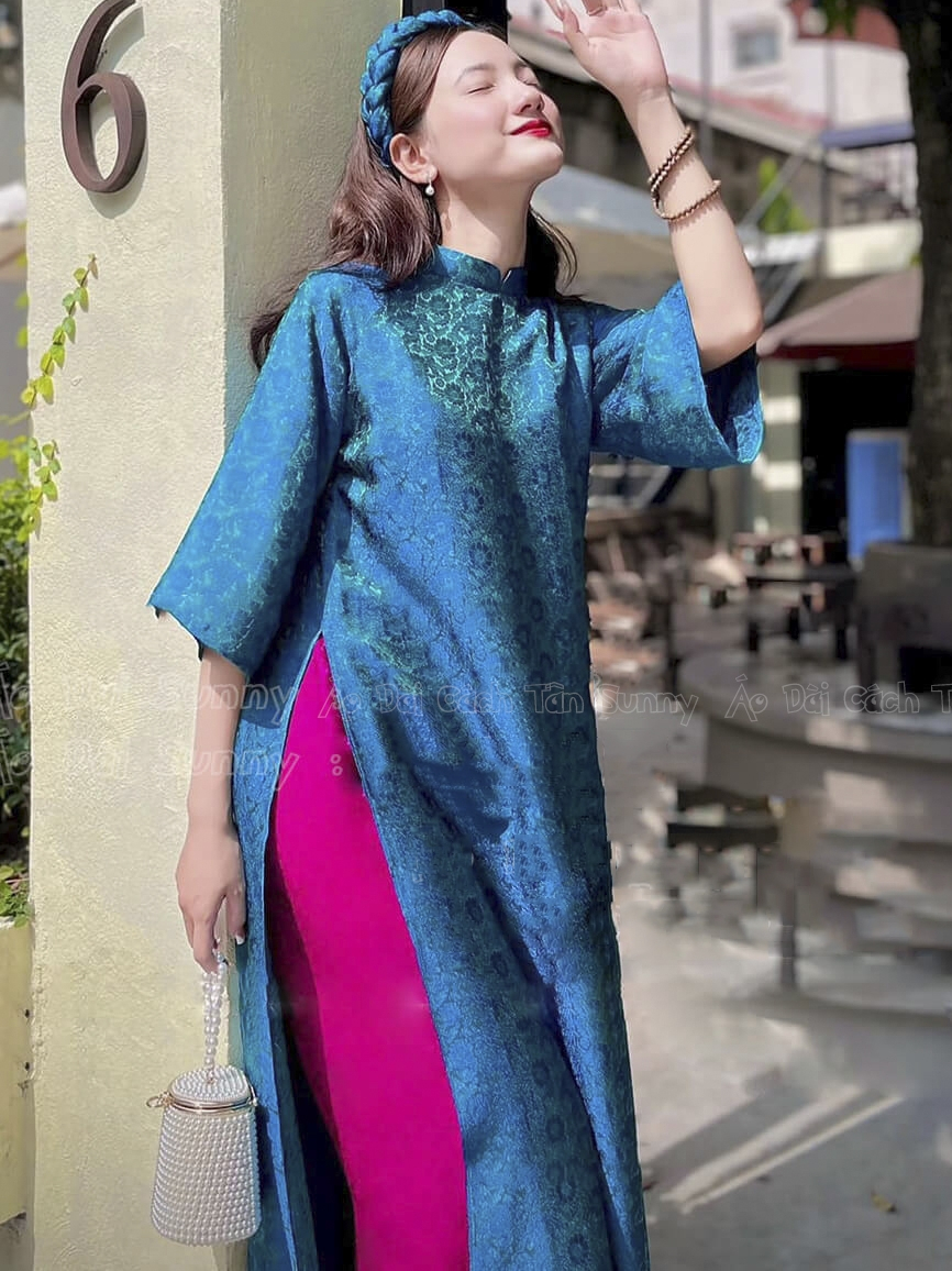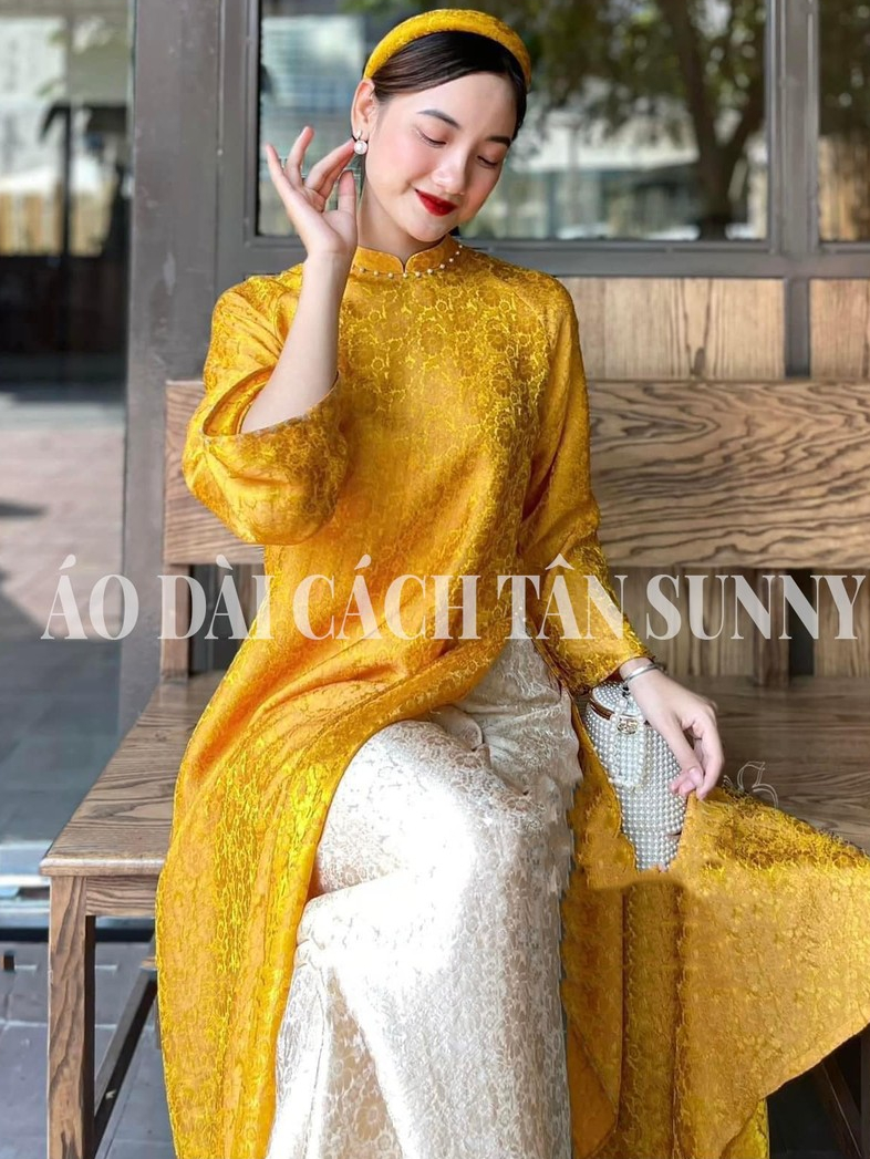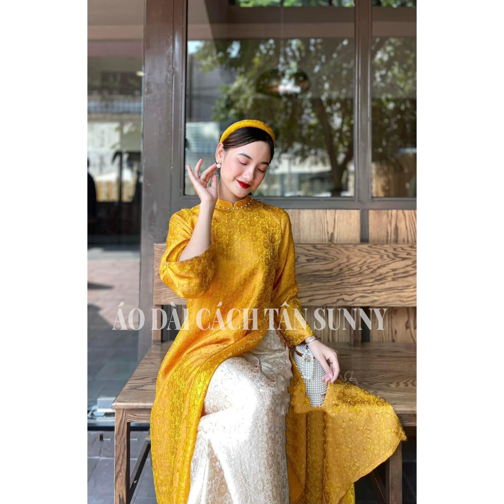 Áo dài cách tân nữ dáng suông chất gấm niên hoa mặc dạo hội lễ tết chụp hình sang trọng đẹp