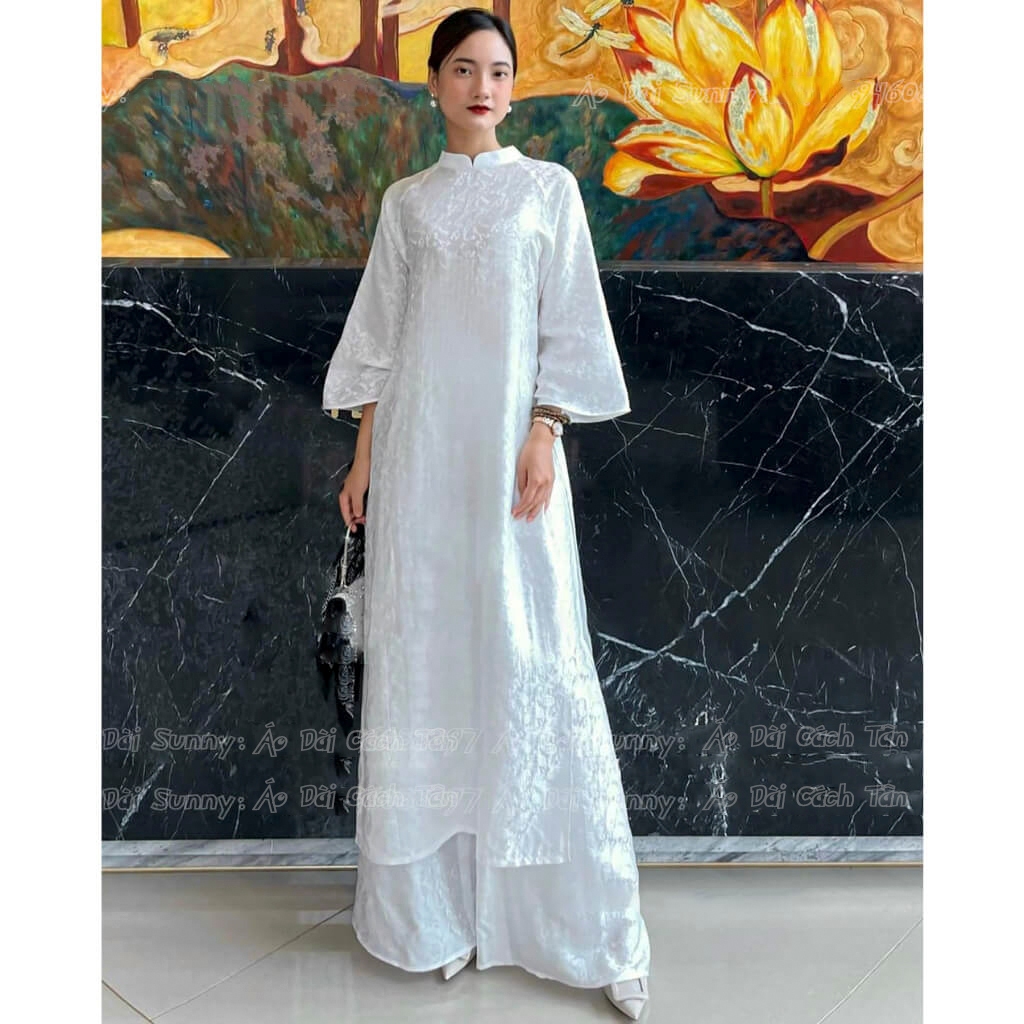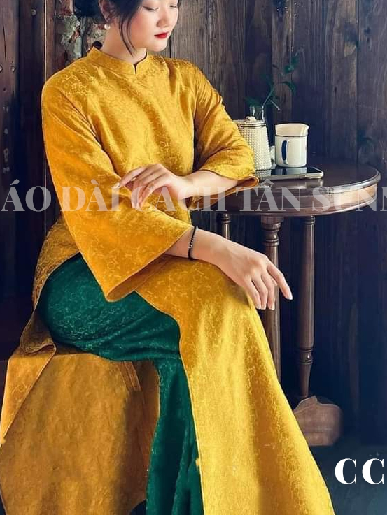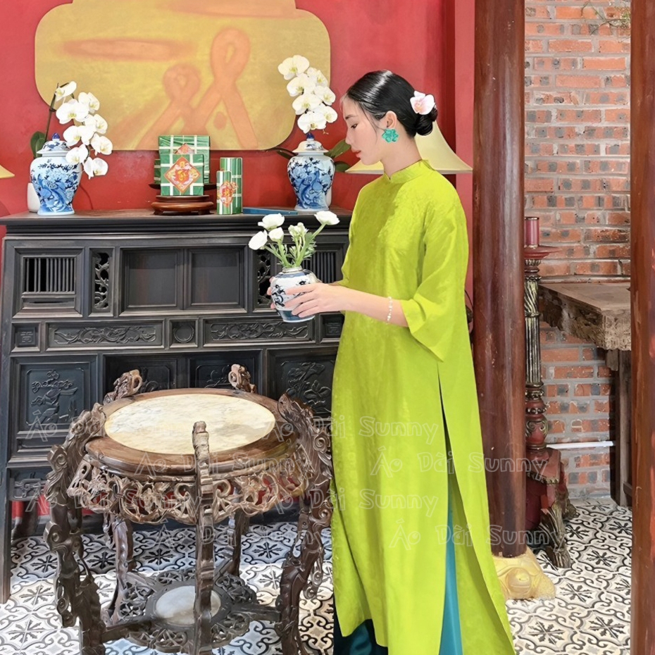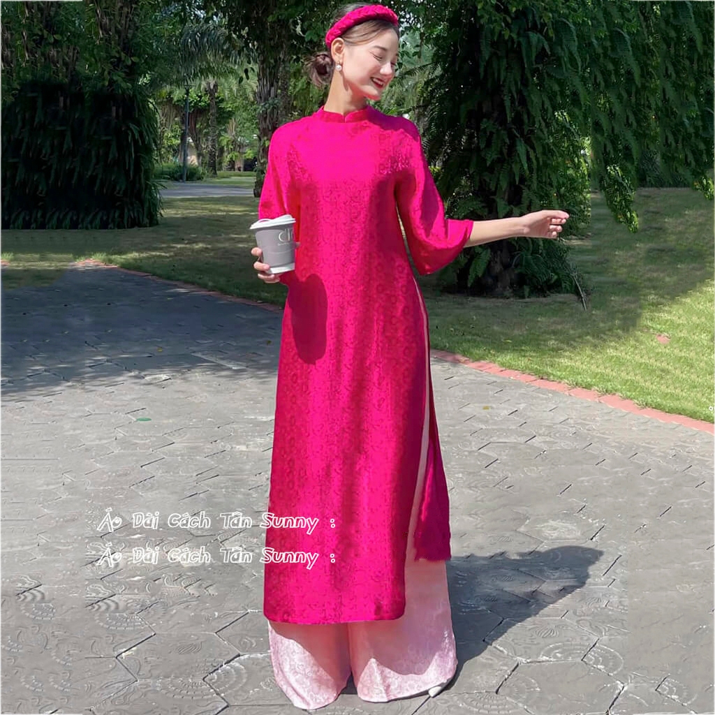 Áo dài cách tân nữ dáng suông chất gấm niên hoa mặc dạo hội lễ tết chụp hình sang trọng đẹp