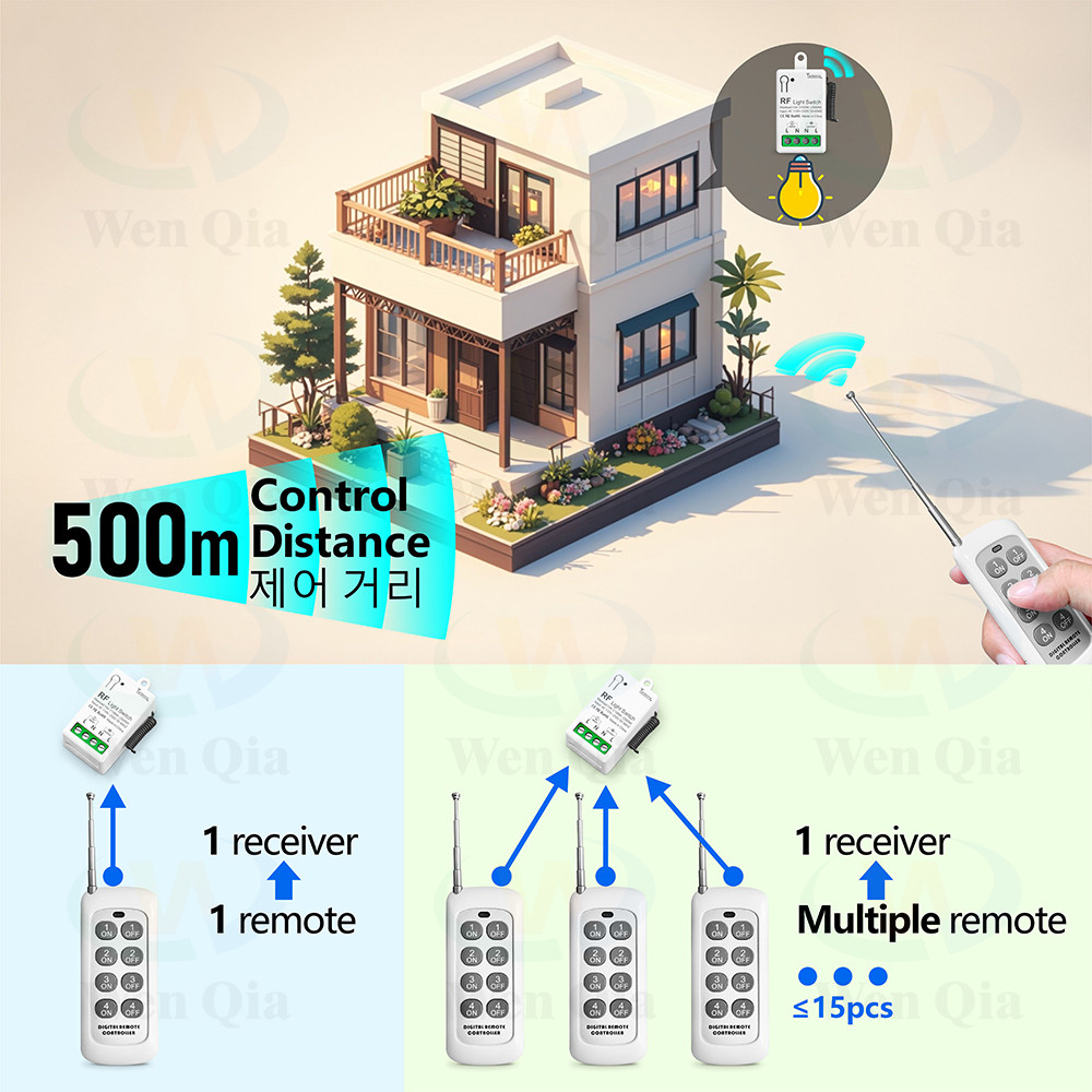 Công tắc đèn điều khiển từ xa không dây Bộ thu RF Mini 110V 220V 10A 433Mhz 500m Khoảng cách điều khiển Bộ ngắt từ xa cho bóng đèn LED