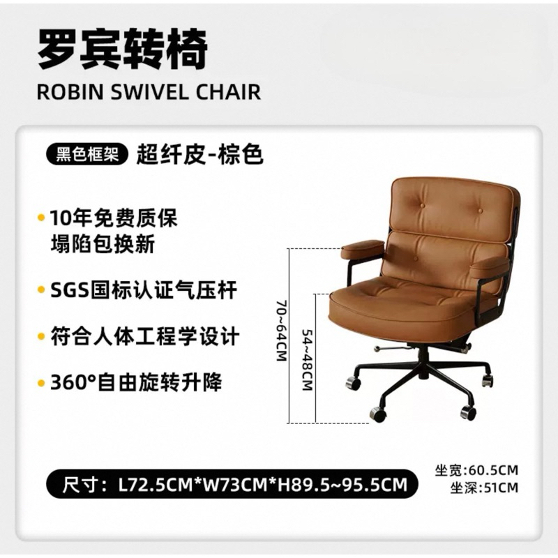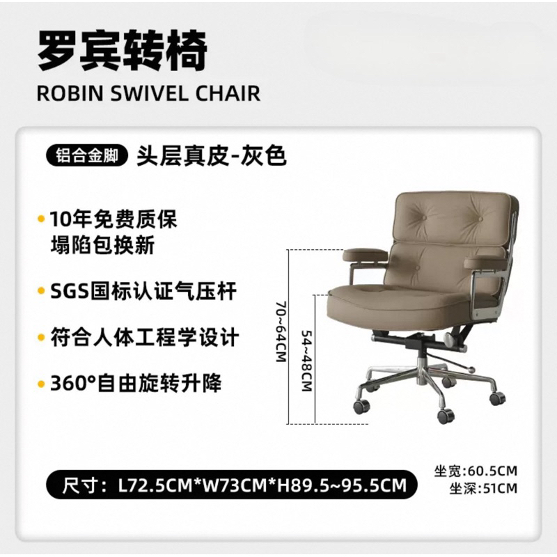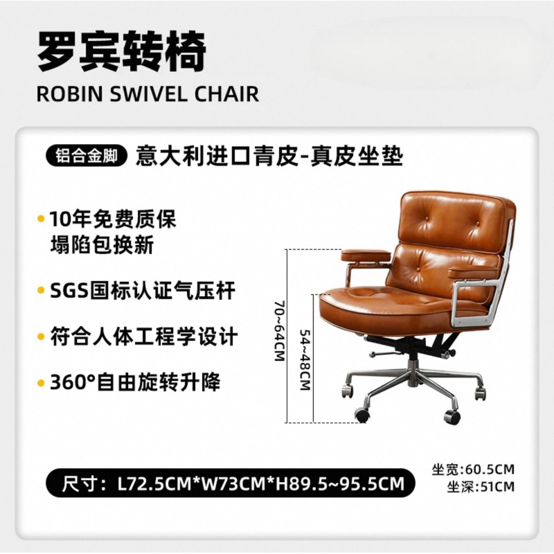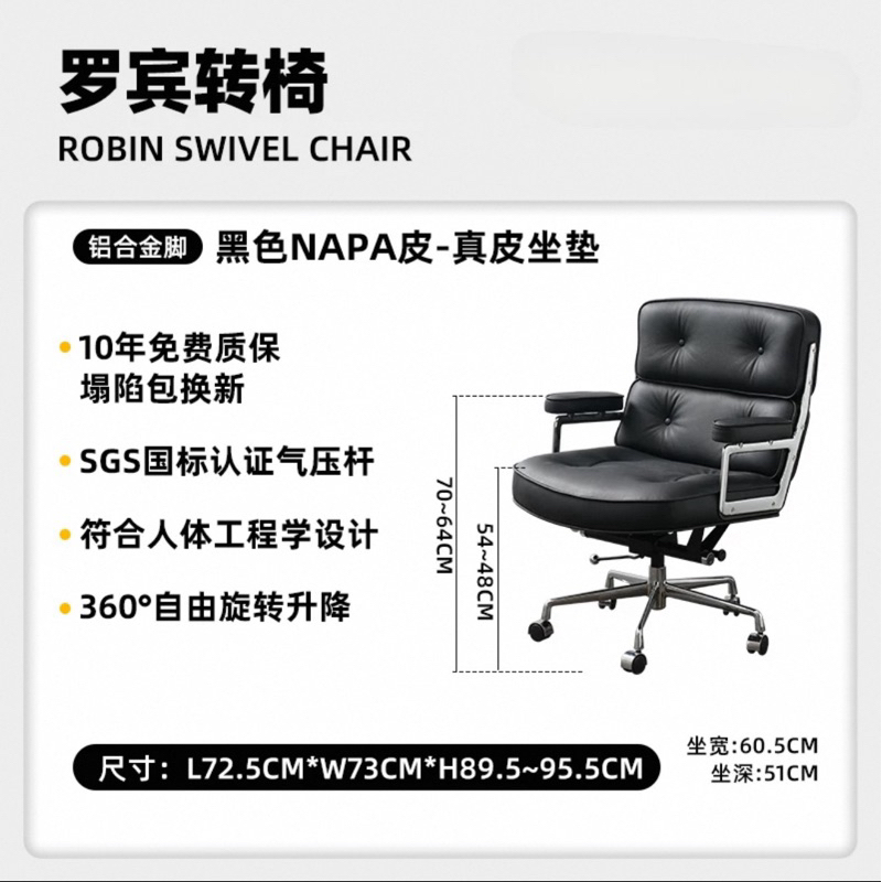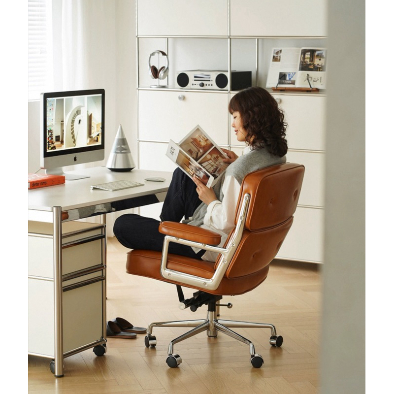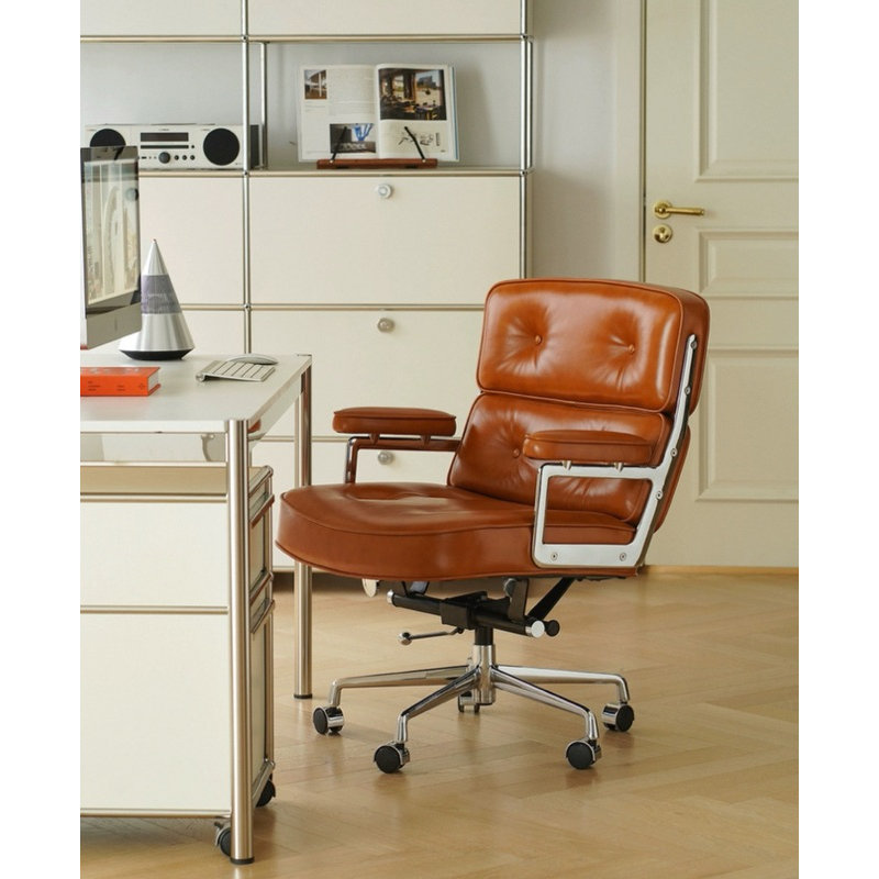 Ghế văn phòng làm việc Eames chair bản da bò nhập khẩu Ý cao cấp, sang trọng