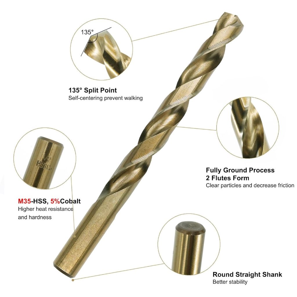 13 / 21 / 29 chiếc (1 / 16-1 / 2 ") Bộ mũi khoan coban- Chiều dài cuộn thép tốc độ cao 5% M35 cho kim loại cứng, thép không gỉ, gang và gỗ nhựa w / Hộp lưu trữ chỉ mục kim loại,