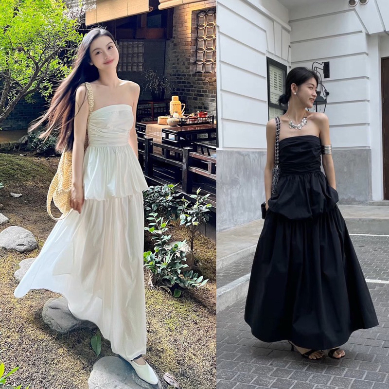 Set Áo Quây Trơn 2 Lớp Dáng Bom Có Đệm Ngực Chun Sau Mix Chân Váy Xoè 2 Màu Có Ảnh Thật ( Hàng 2 Lớp)