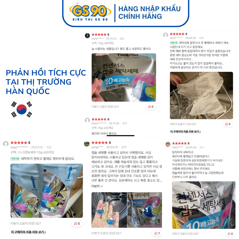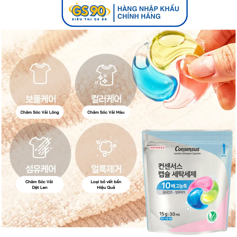 [MUA 2 TẶNG 1] Túi 30/60 Viên Giặt Xả Hàn Quốc Consensus Hương Thơm Tươi Mát Khử Mùi Ẩm Mốc