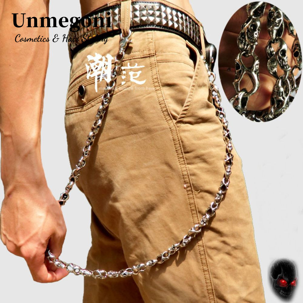 Unmegoni Nam Đầu Lâu Ví Dây Xích, Hợp Kim Bền Gothic Punk Nặng Dây Xích, Bạc 40 / 60cm Biker Cưỡi Rock Phụ Kiện Thời Trang