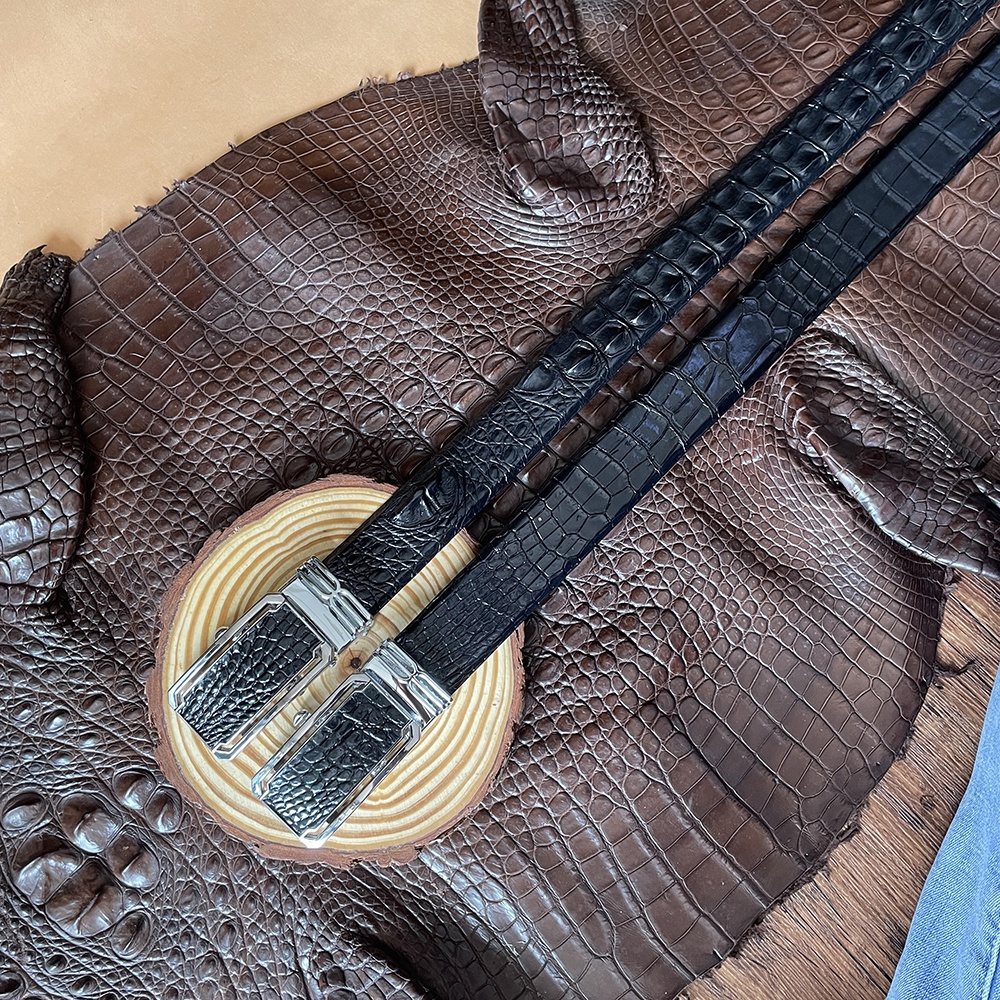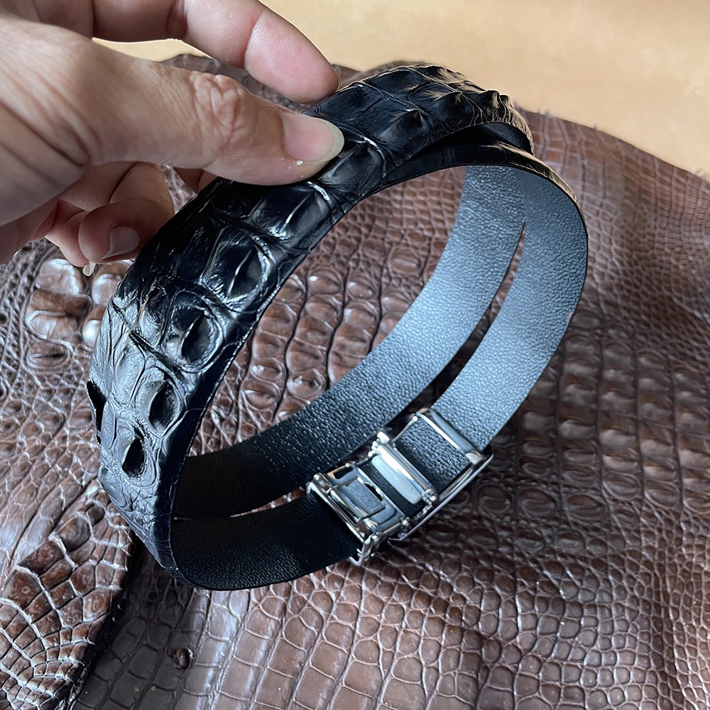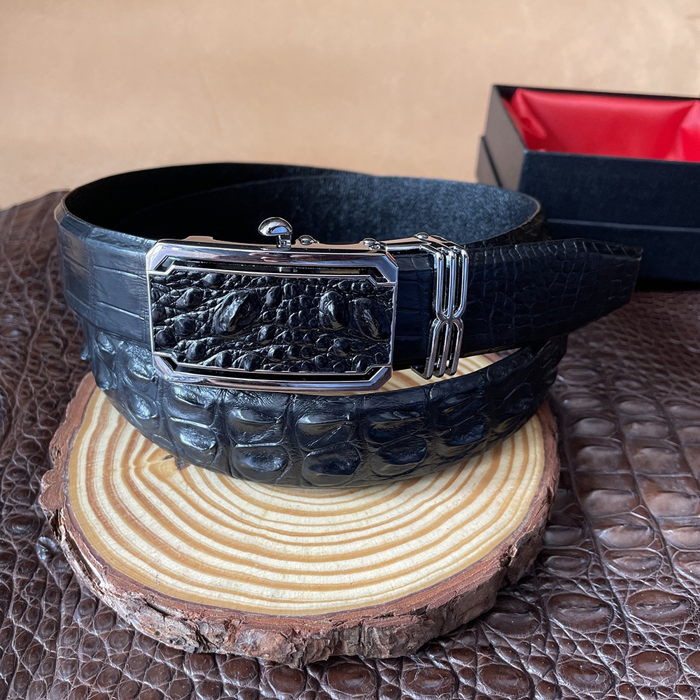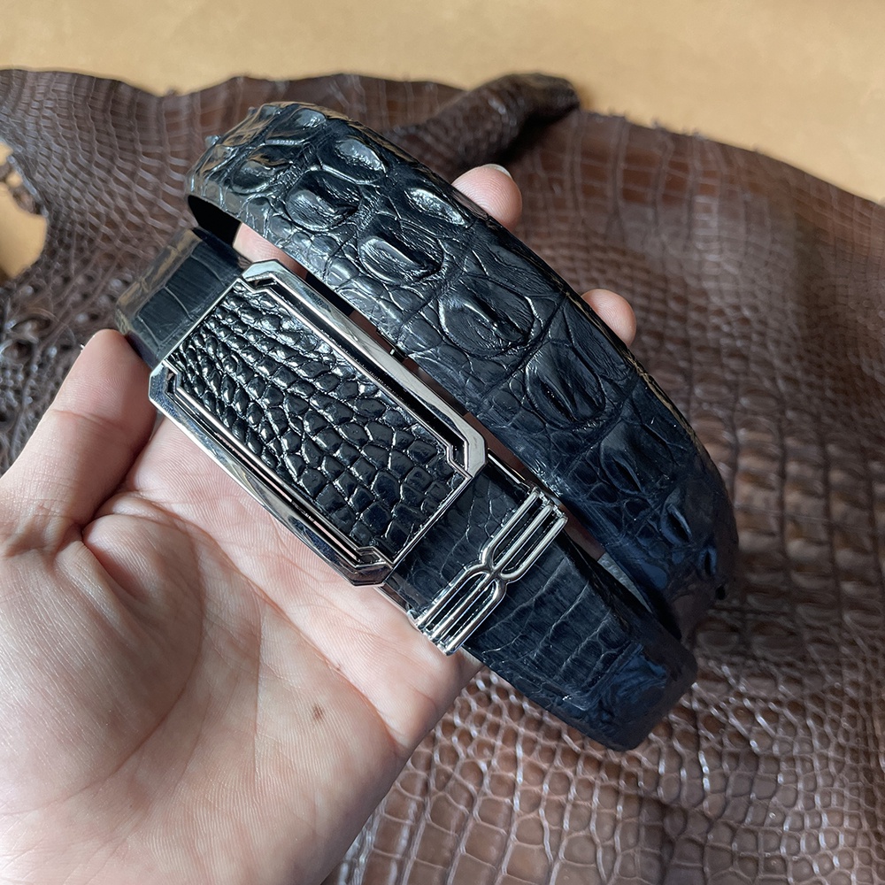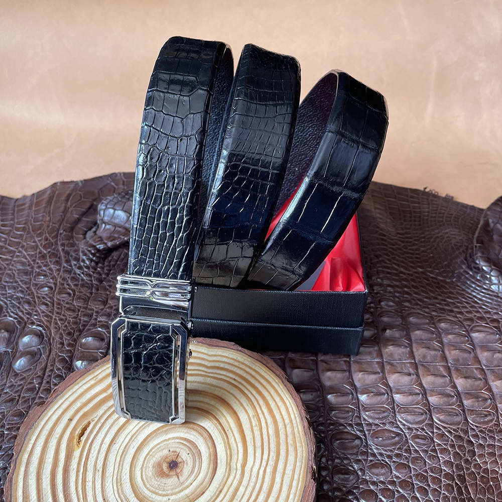 Thắt Lưng Nam Da Cá Sấu Thật 100% ST344 Bản Rộng 3.4cm Màu Đen Da Gai Lưng Và Da Trơn Cá Sấu Full Hộp Bh 24 Tháng