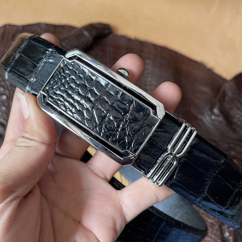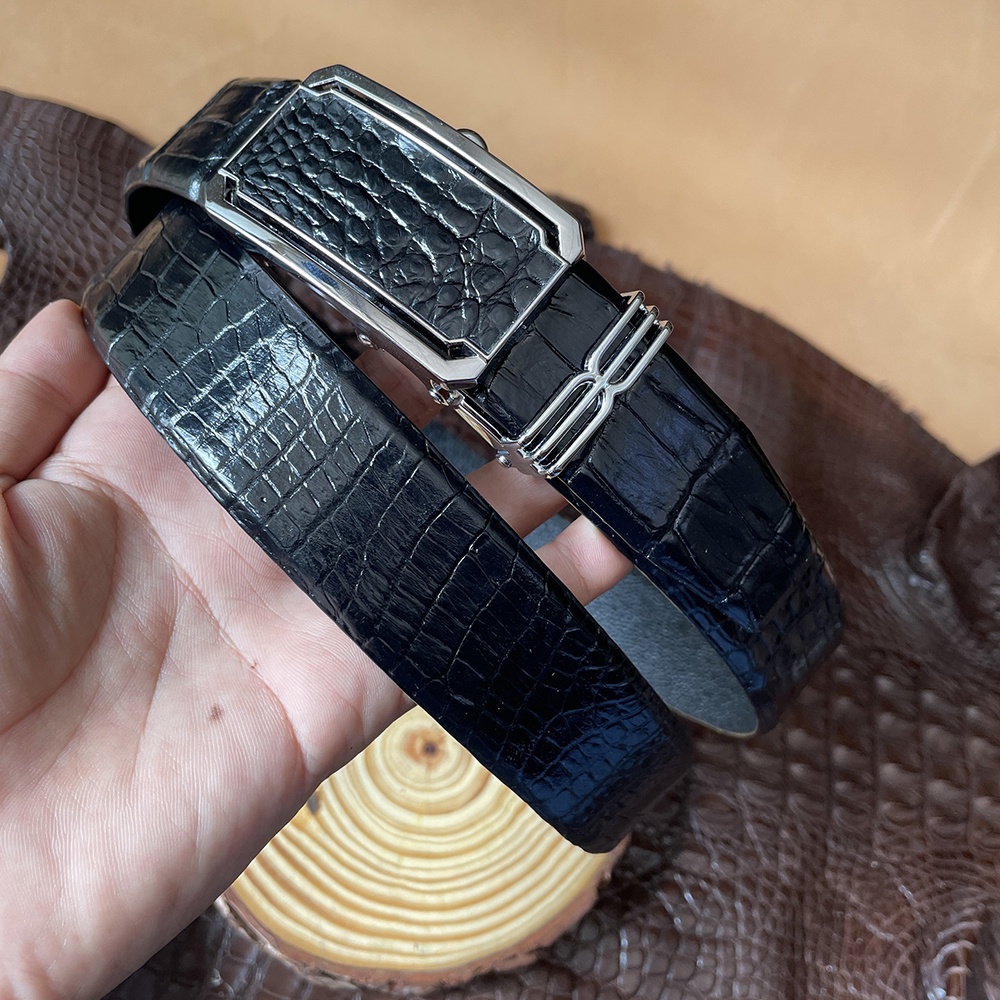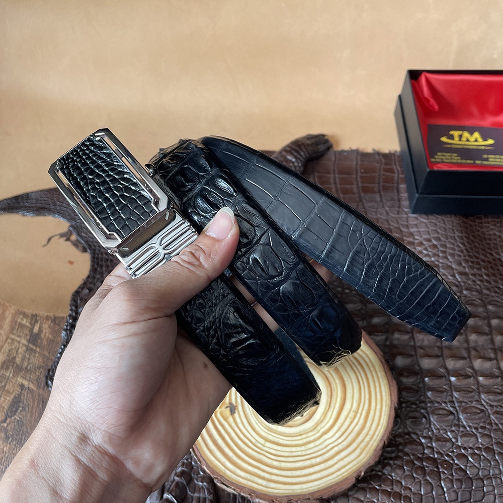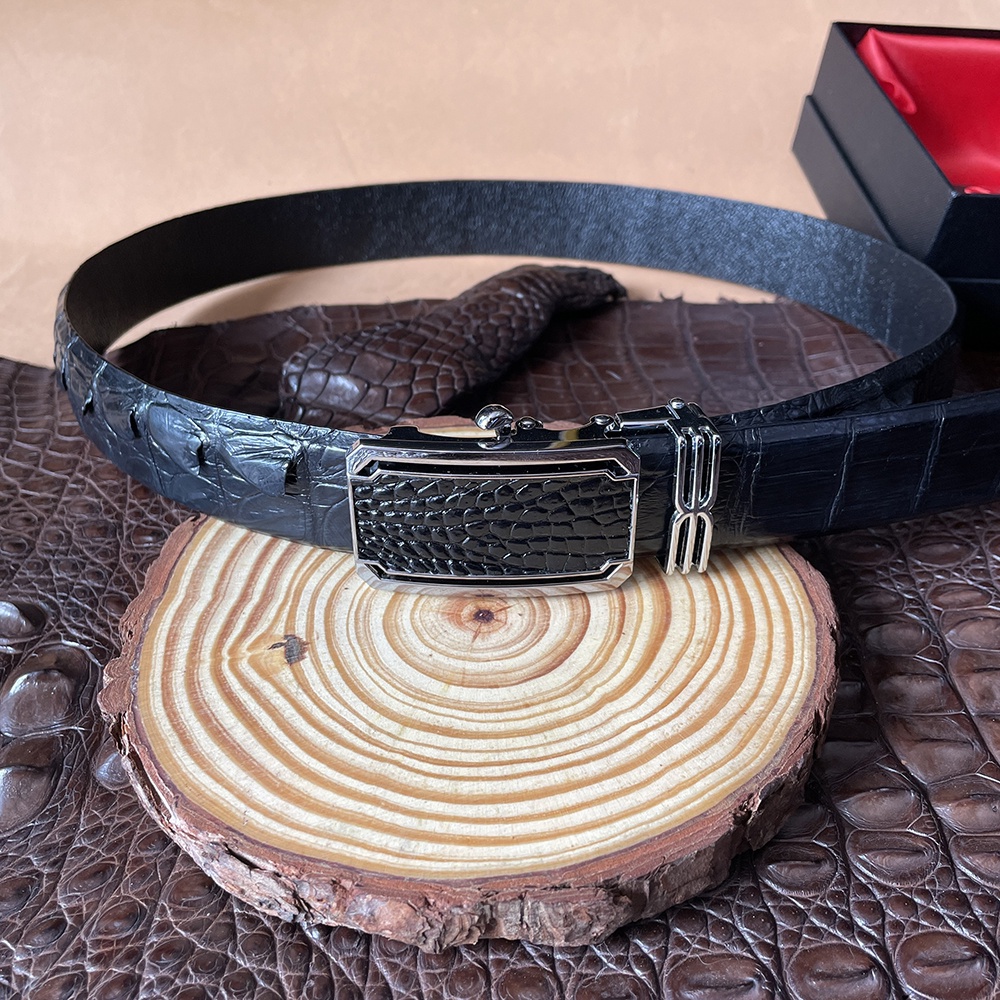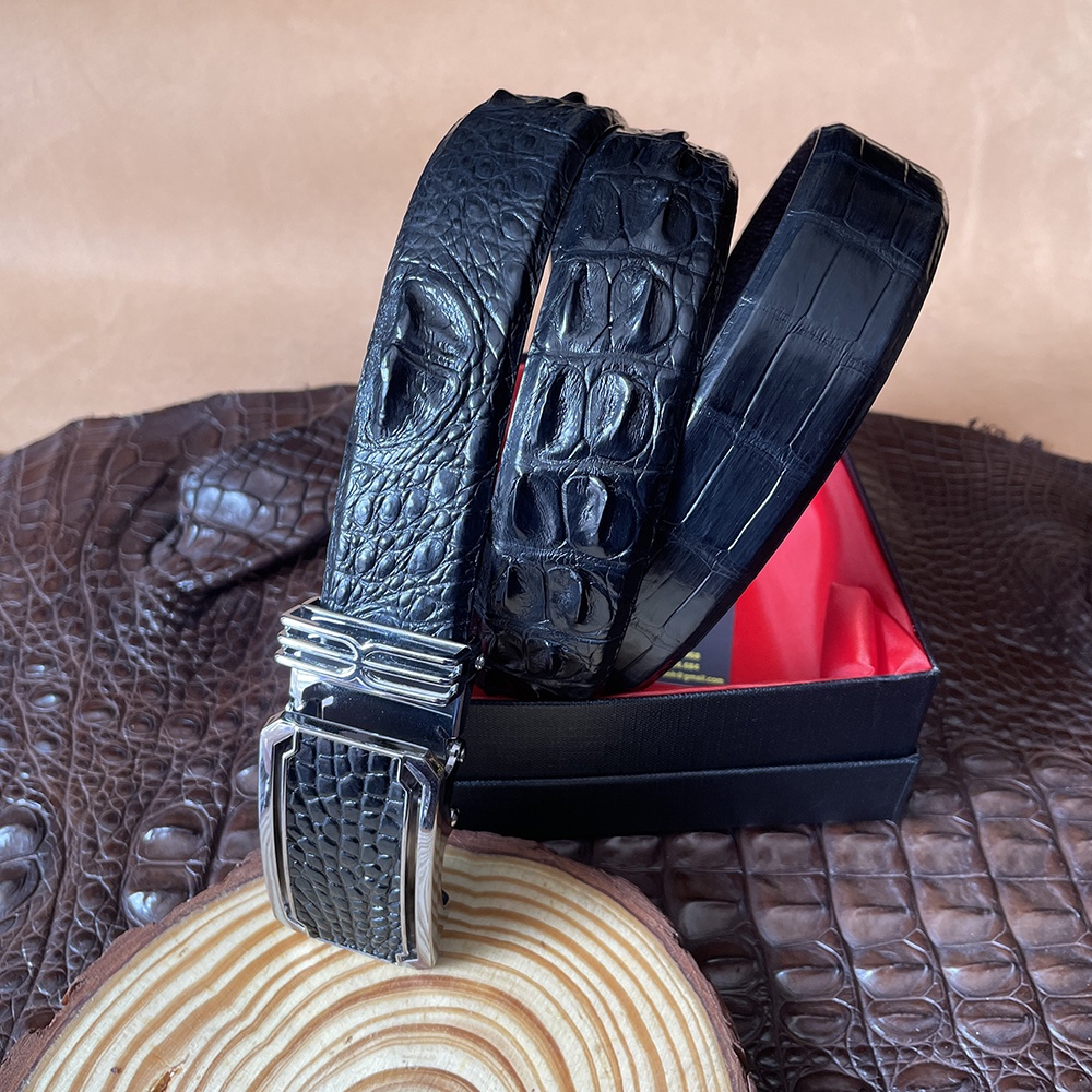 Thắt Lưng Nam Da Cá Sấu Thật 100% ST344 Bản Rộng 3.4cm Màu Đen Da Gai Lưng Và Da Trơn Cá Sấu Full Hộp Bh 24 Tháng