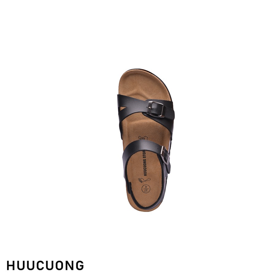 Giày Sandal nữ HuuCuong 1 khóa đen đế trấu handmade