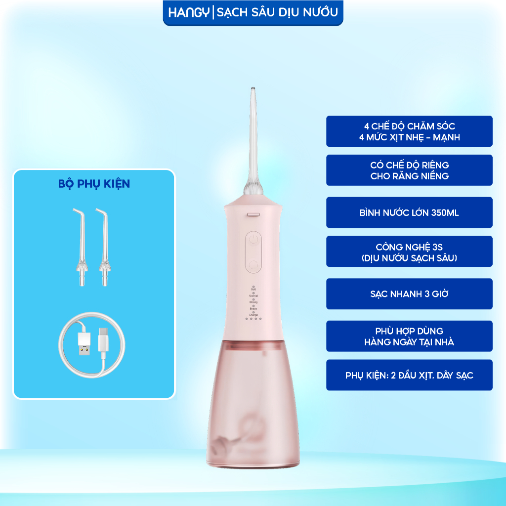 Máy Tăm Nước Cầm Tay Cho Răng Niềng HG23 & HN26 - Pin Trâu, 4 Chế Độ - Đổi mới trong 12 tháng