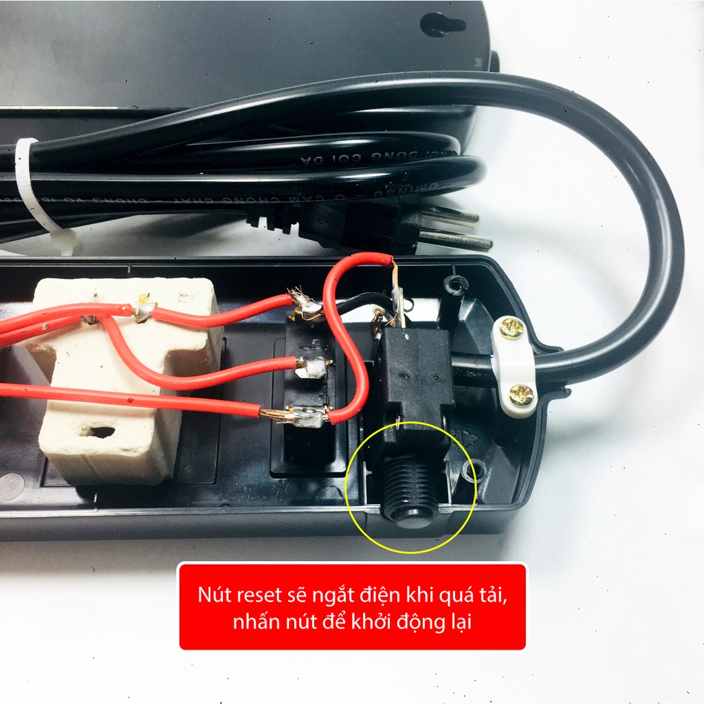 Ổ cắm điện đa năng 6 lỗ OMINSU ổ cắm lõi sứ chịu tải cao đến 2000W có CB reset bảo vệ quá tải