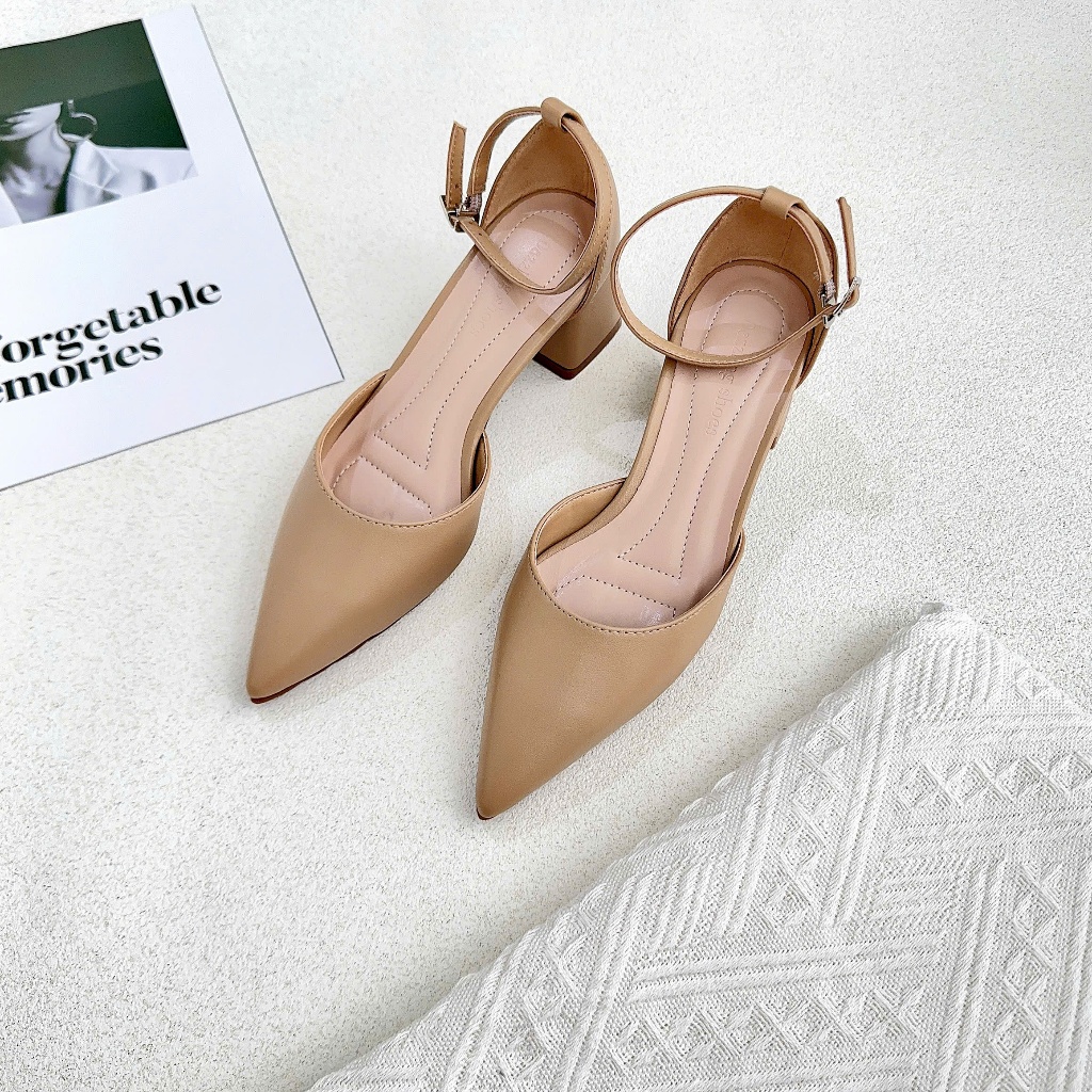 Giày cao gót nữ mũi nhọn đế êm gót trụ Trapeze Slingback 5cm thiết kế khóa cài dáng sang trọng SLB86 - DAZZLING SHOES