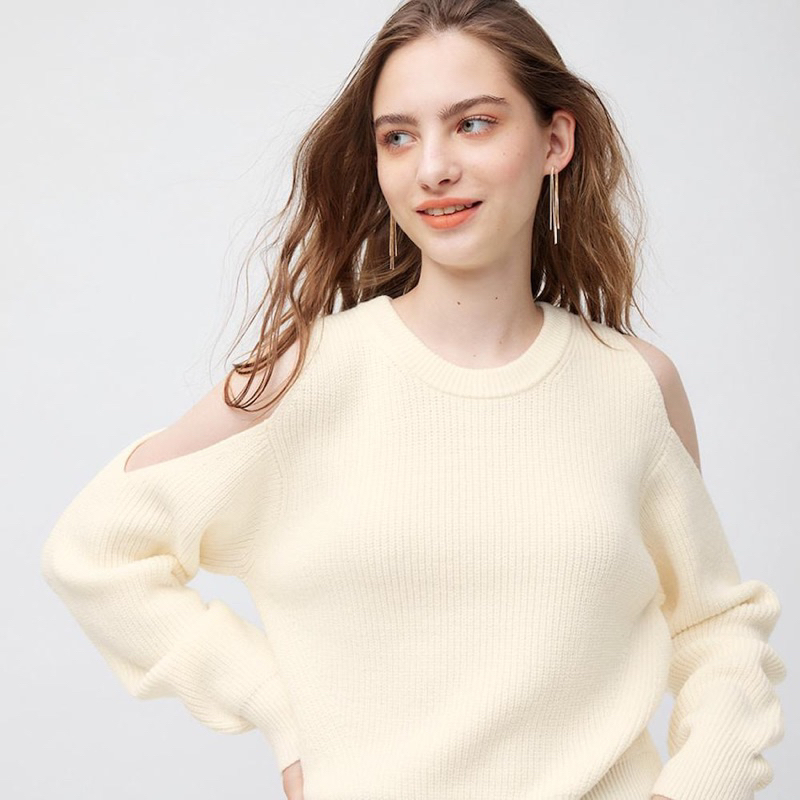 Áo len nữ cổ tròn hở vai dễ thương của GU - Nhật