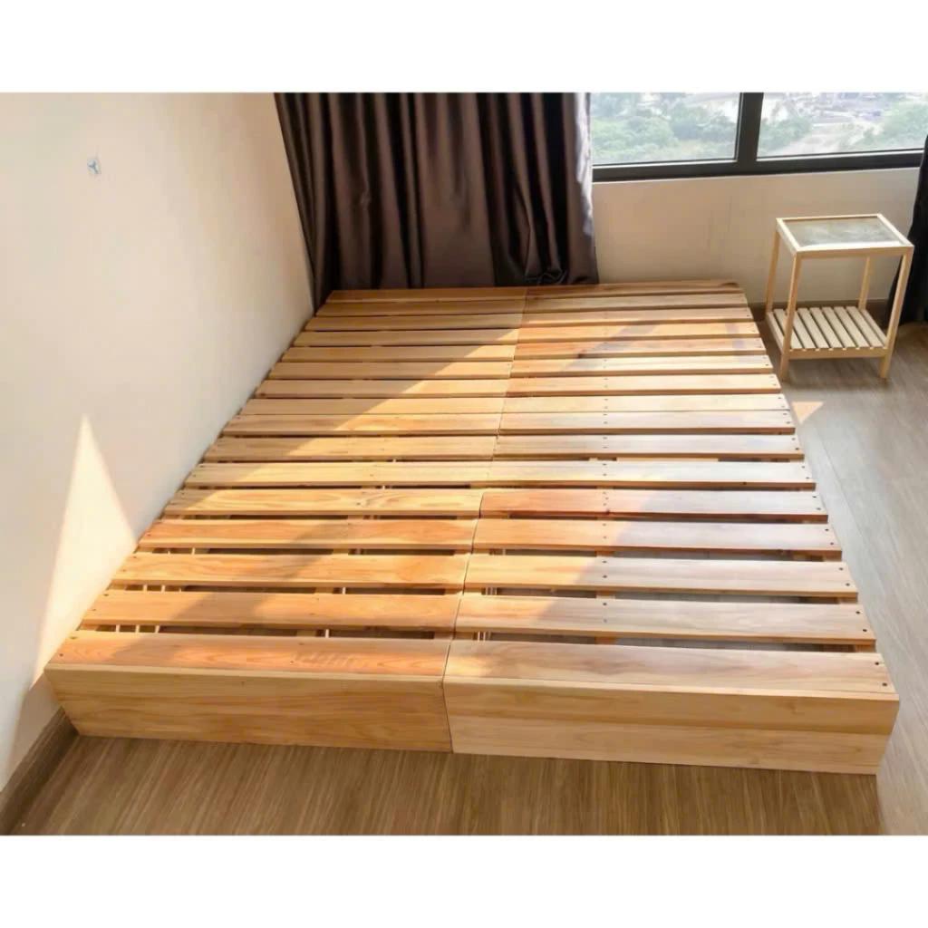 Giường Ngủ Gỗ Thông Mỹ Nhập Khẩu - Pallet Cao Cấp cao 10cm, 18cm - Chắc Chắn, Gấp Gọn, Không đinh dăm, Kín gầm