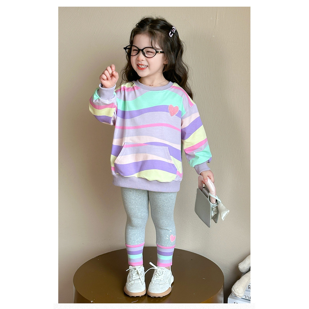[ML] Quần áo mùa thu 90-140CM Quần áo đi chơi cho bé trai bé gái Áo dài tay sọc đầy màu sắc Bộ đồ áo thun trẻ em hợp thời trang