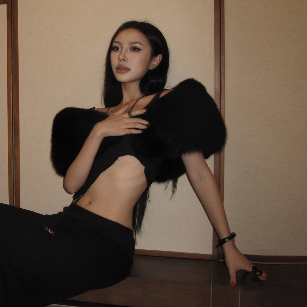 Weird Puss Lạ Puss Thời Trang Khăn Choàng Lông Tơ Baggy Màu Trơn Đơn Giản Nữ Pháp Thường Ngày Hot Chick Đa Năng Phong Cách Đường Phố