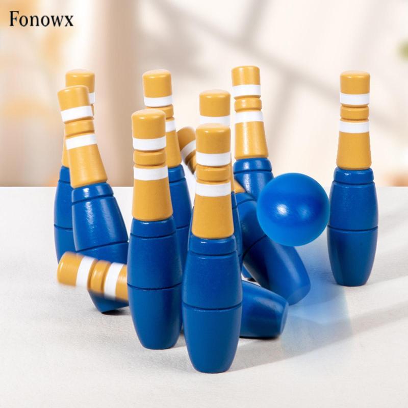 Bộ Bowling Gỗ Skittles Đồ Chơi Tương Tác Đồ Chơi Sân Sau Gỗ Thể Thao Ngoài Trời