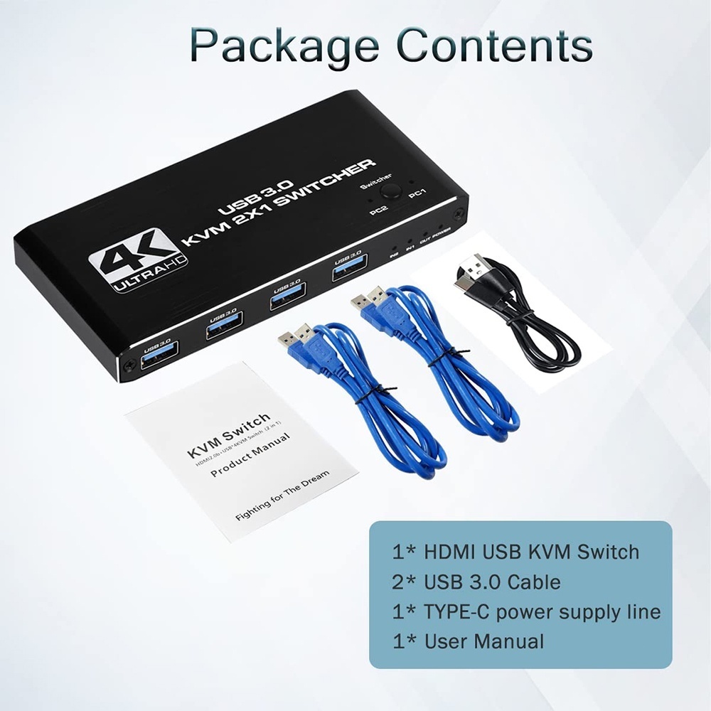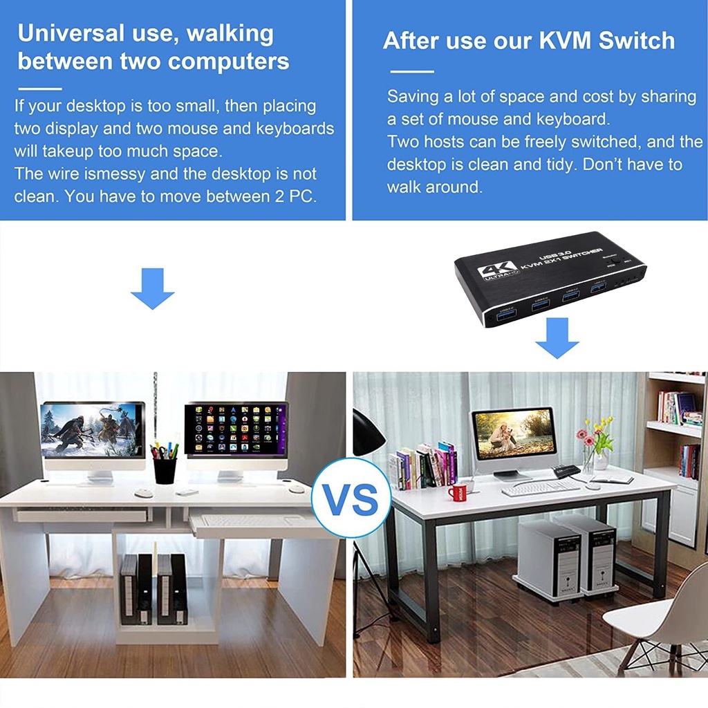 HDMI 4K USB3.0 KVM Switch 2 PC trong 1 Màn hình Chia sẻ 4 Bàn phím USB Máy in chuột