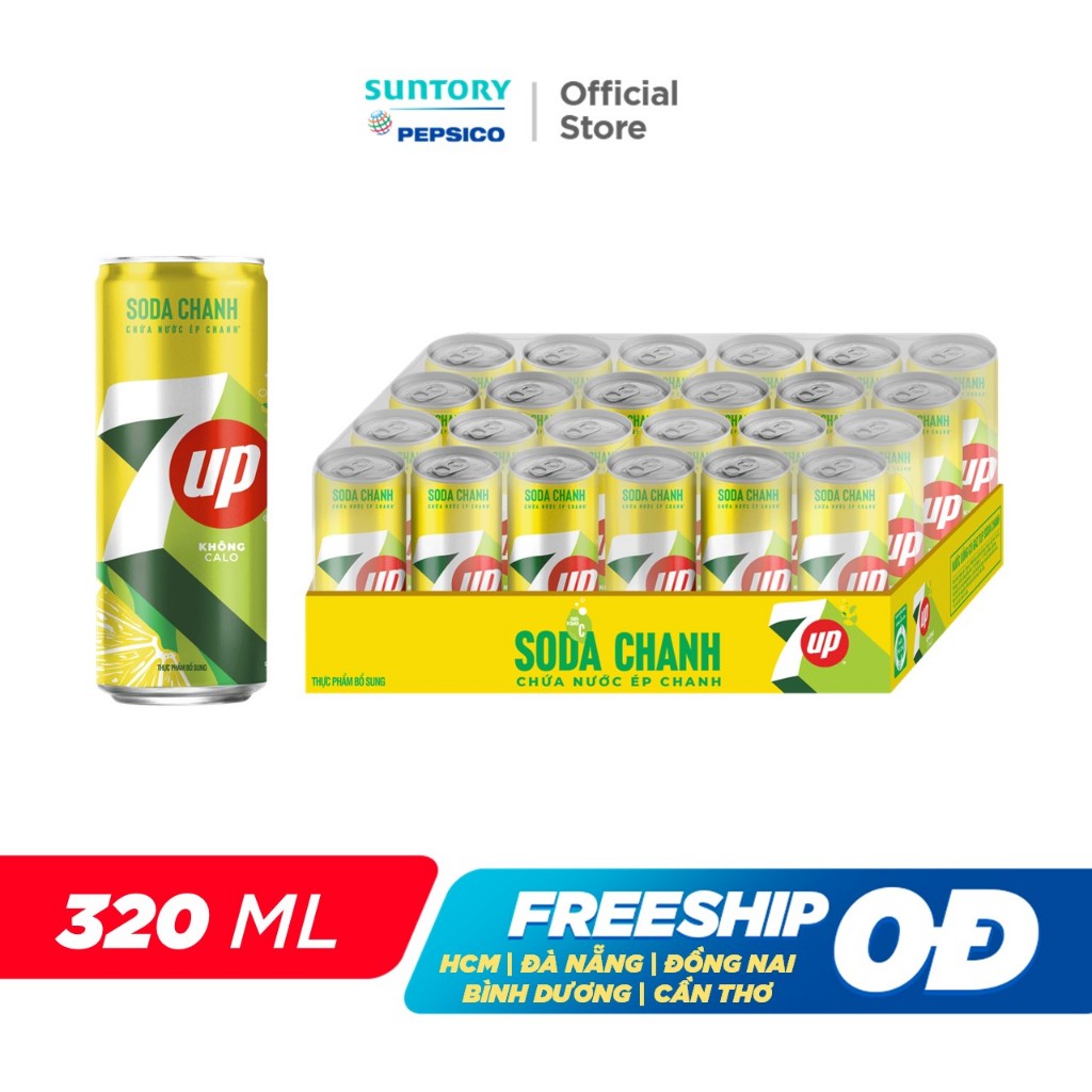 [Hỏa Tốc] Thùng 24 Lon Nước Uống Có Gaz 7UP Soda Chanh Không Calo, Không Đường (320ml/lon)